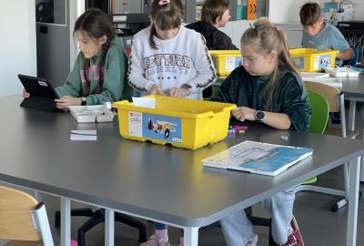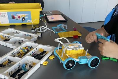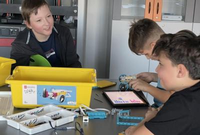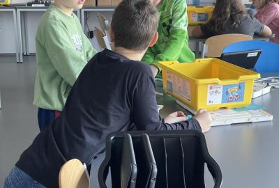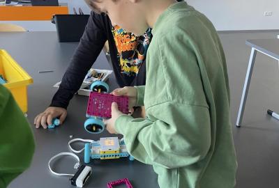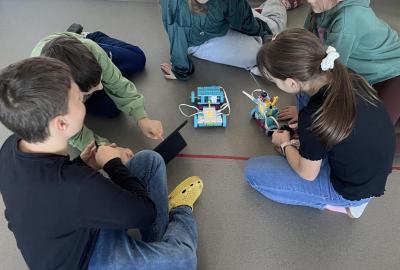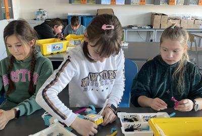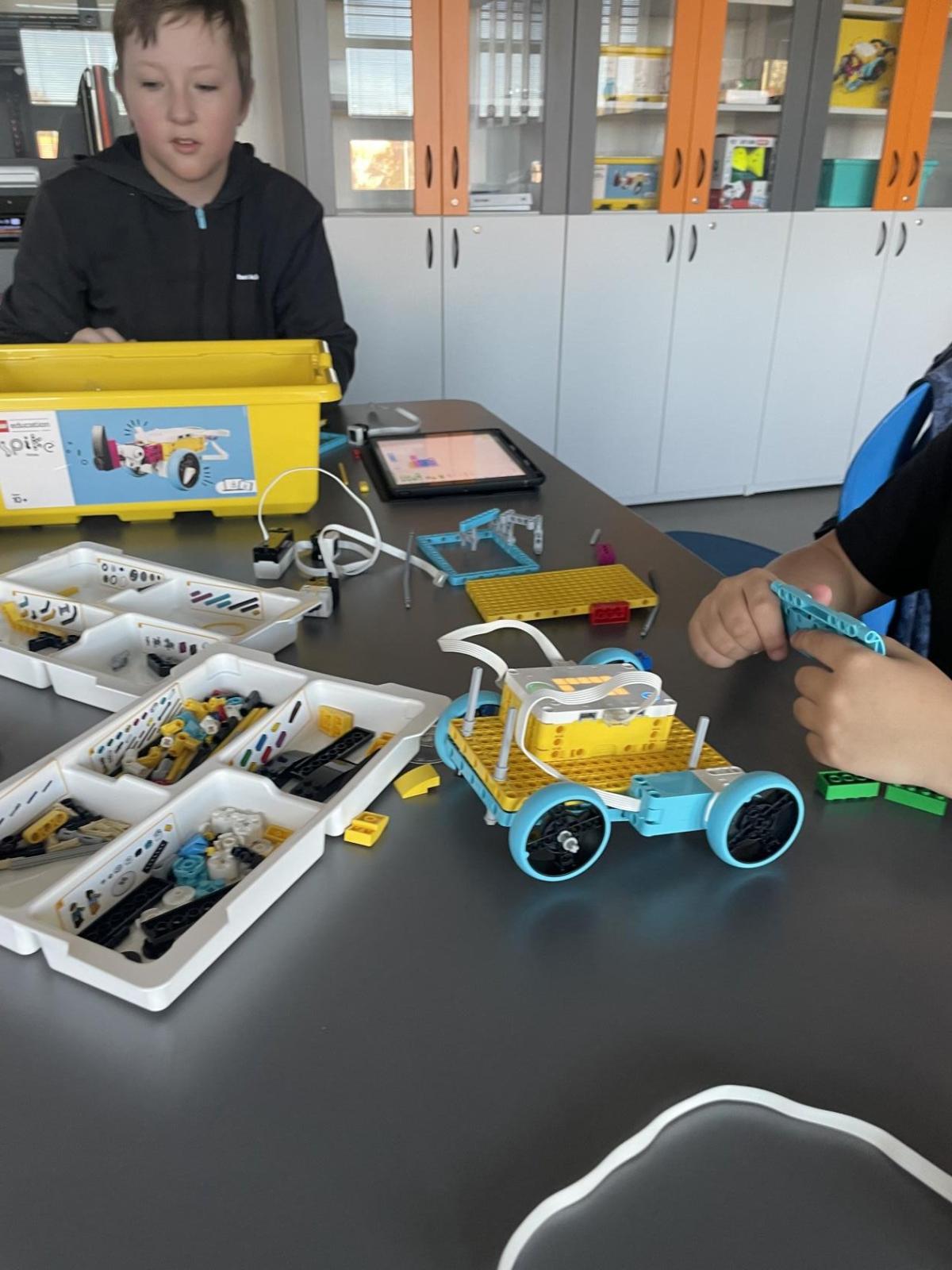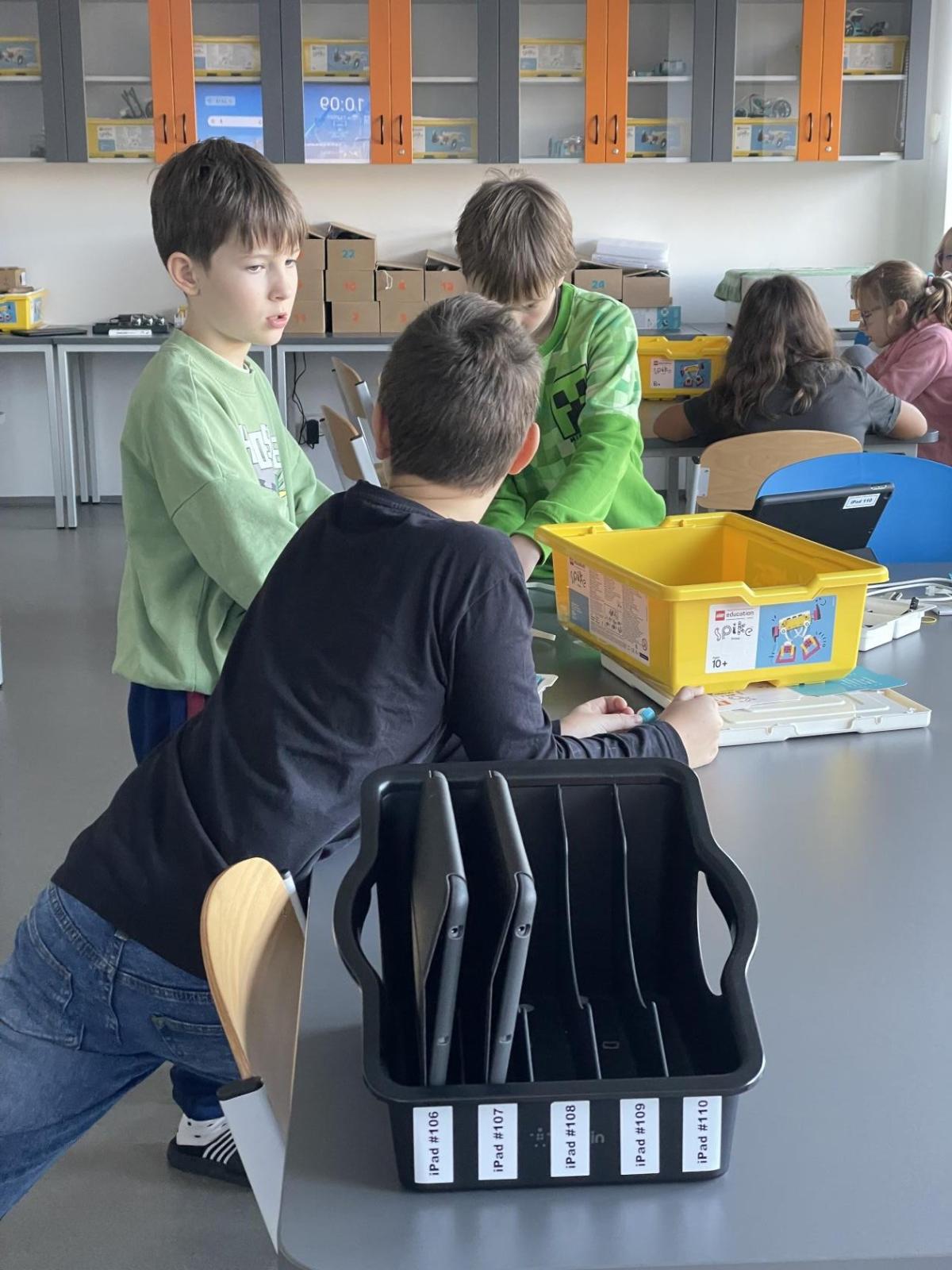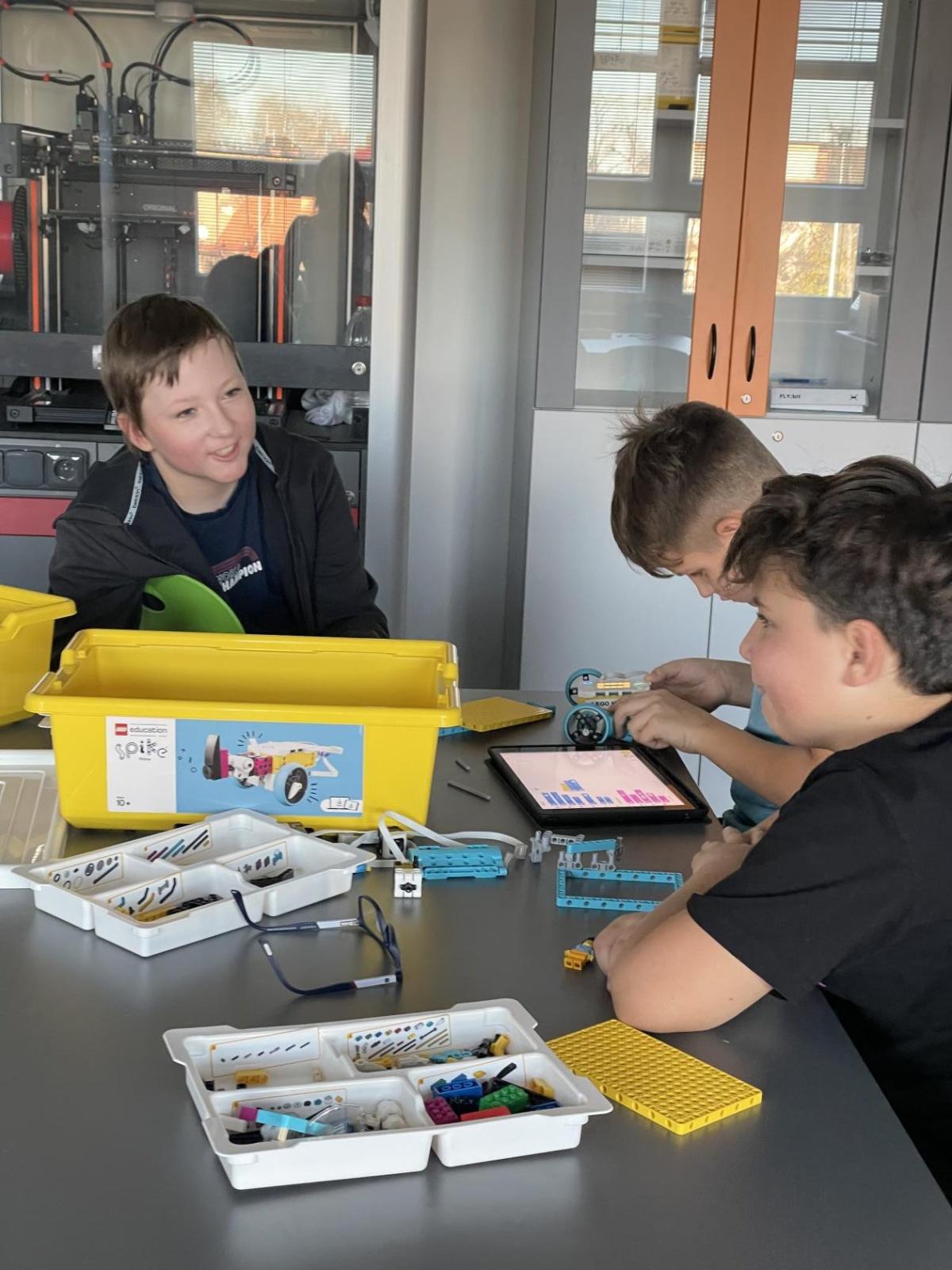 Žáci 5. B si si užili dopoledne plné informatiky a vyzkoušeli si práci se stavebnicí Lego Spike.