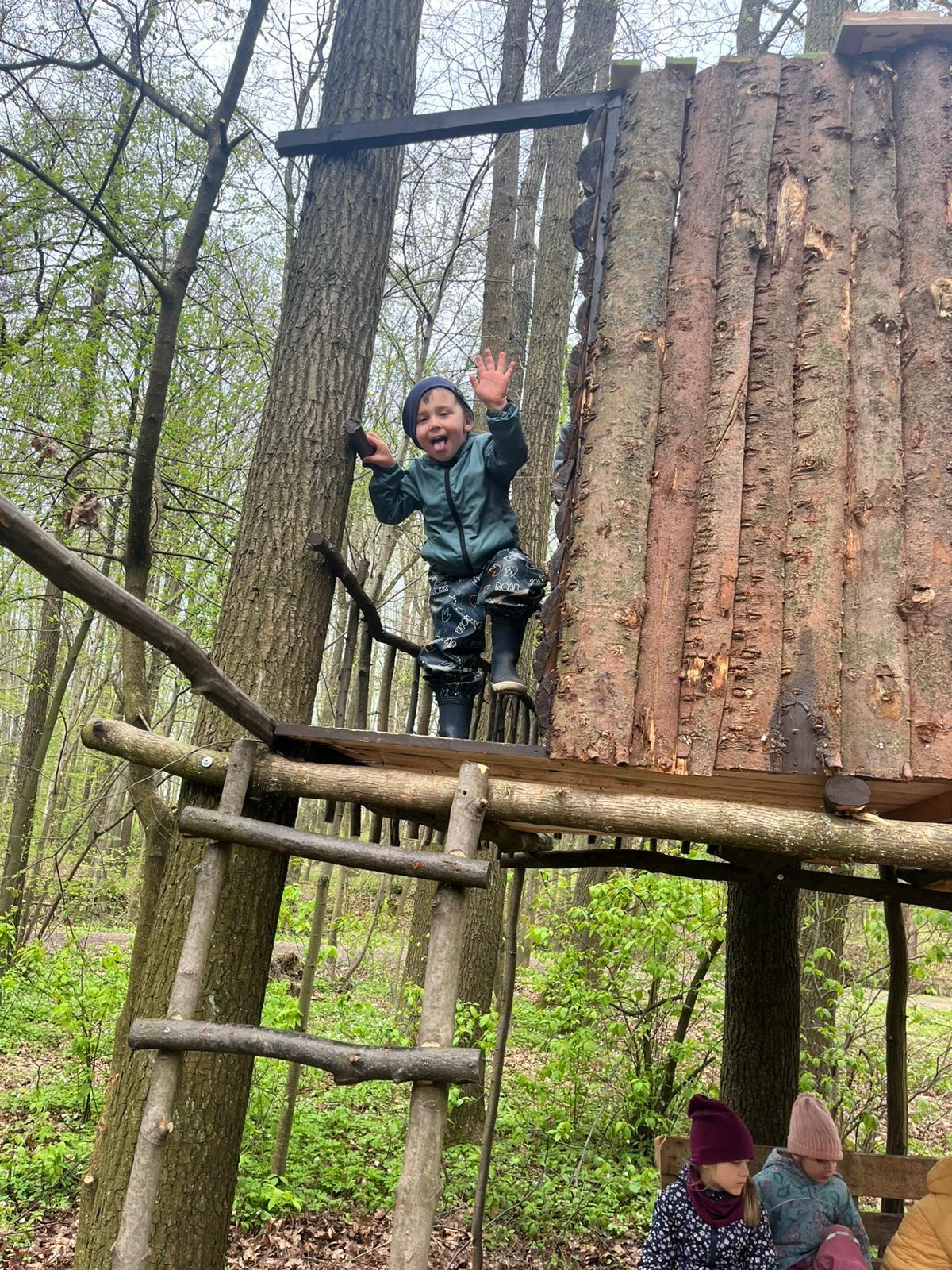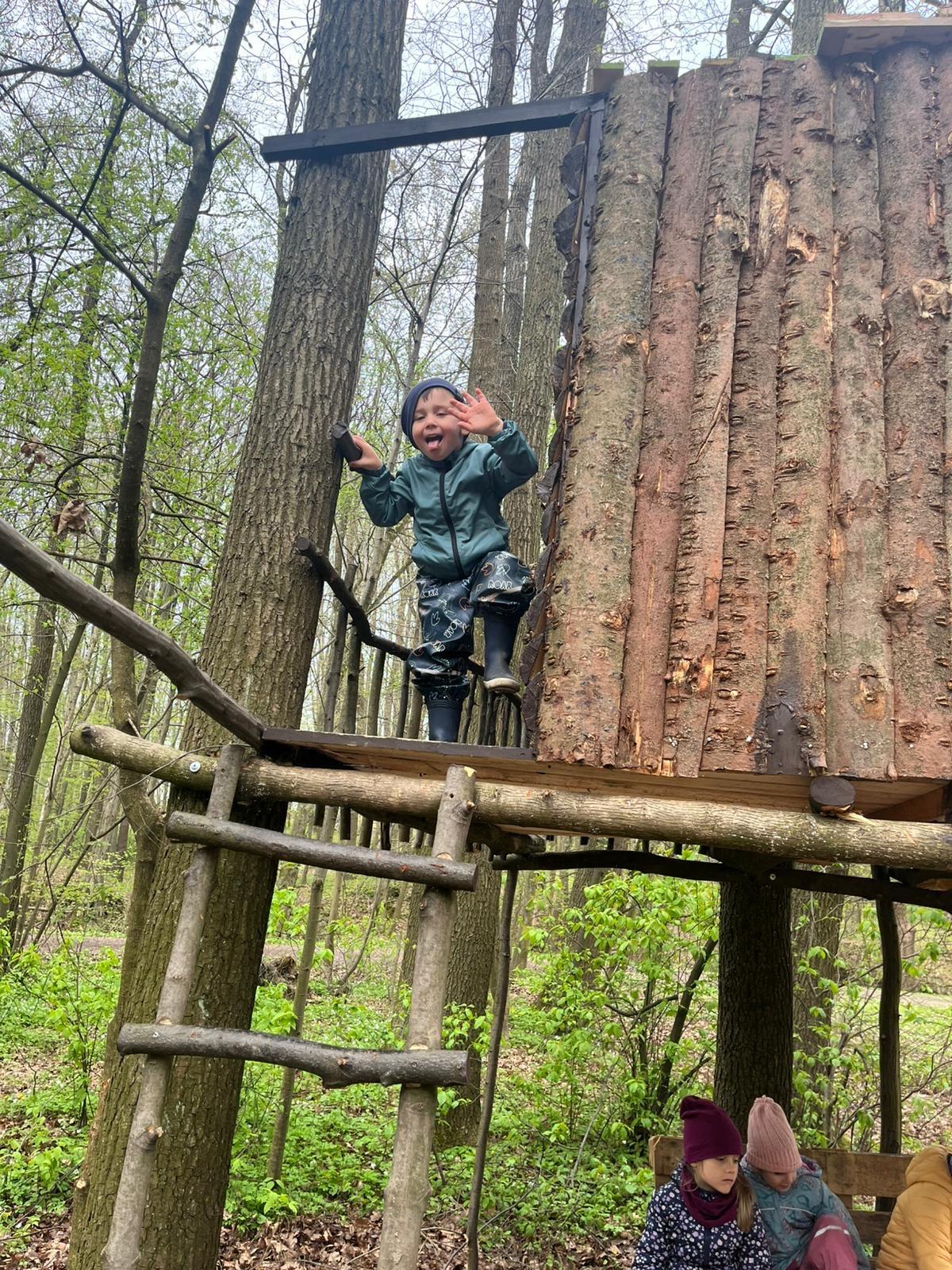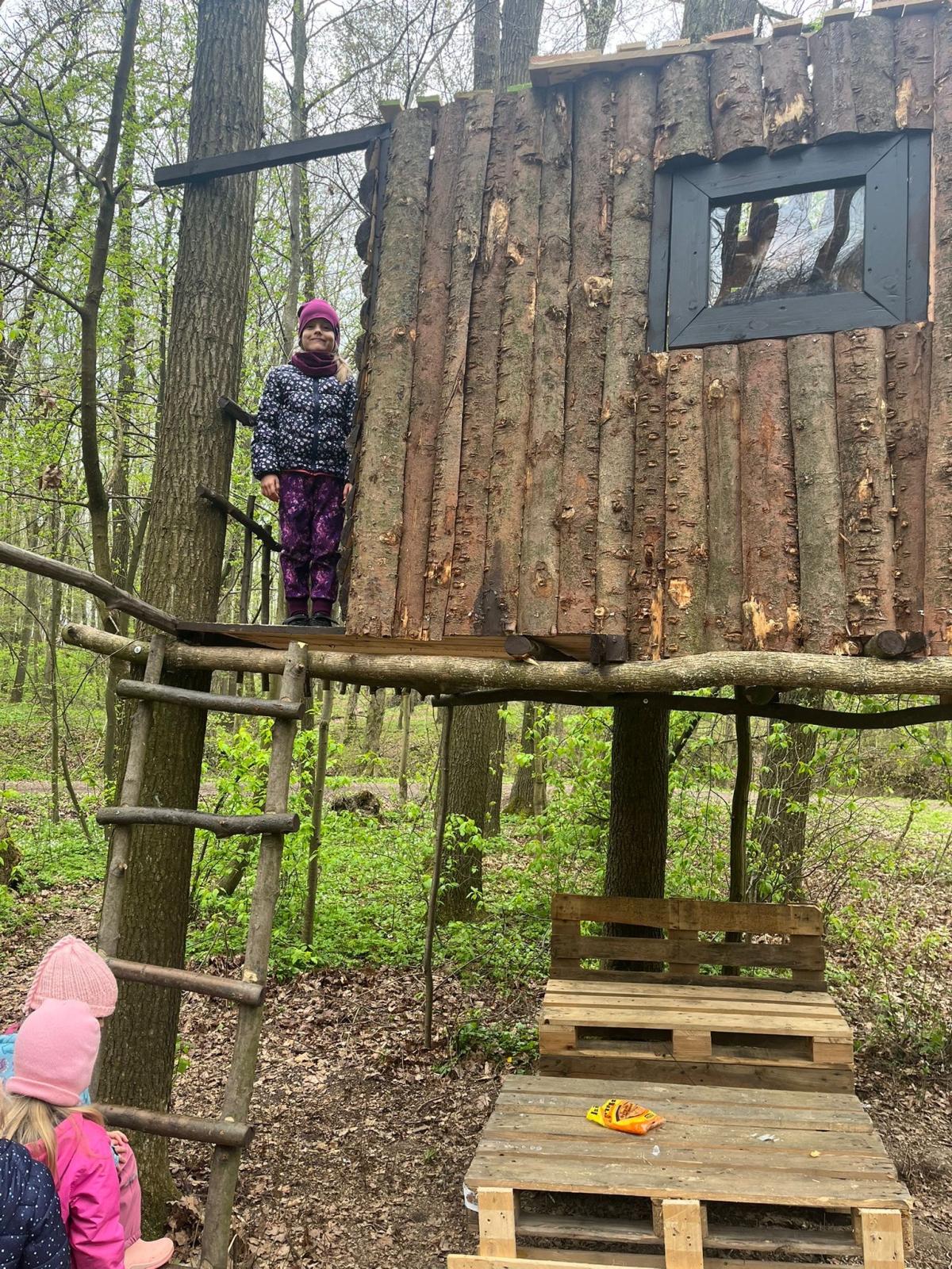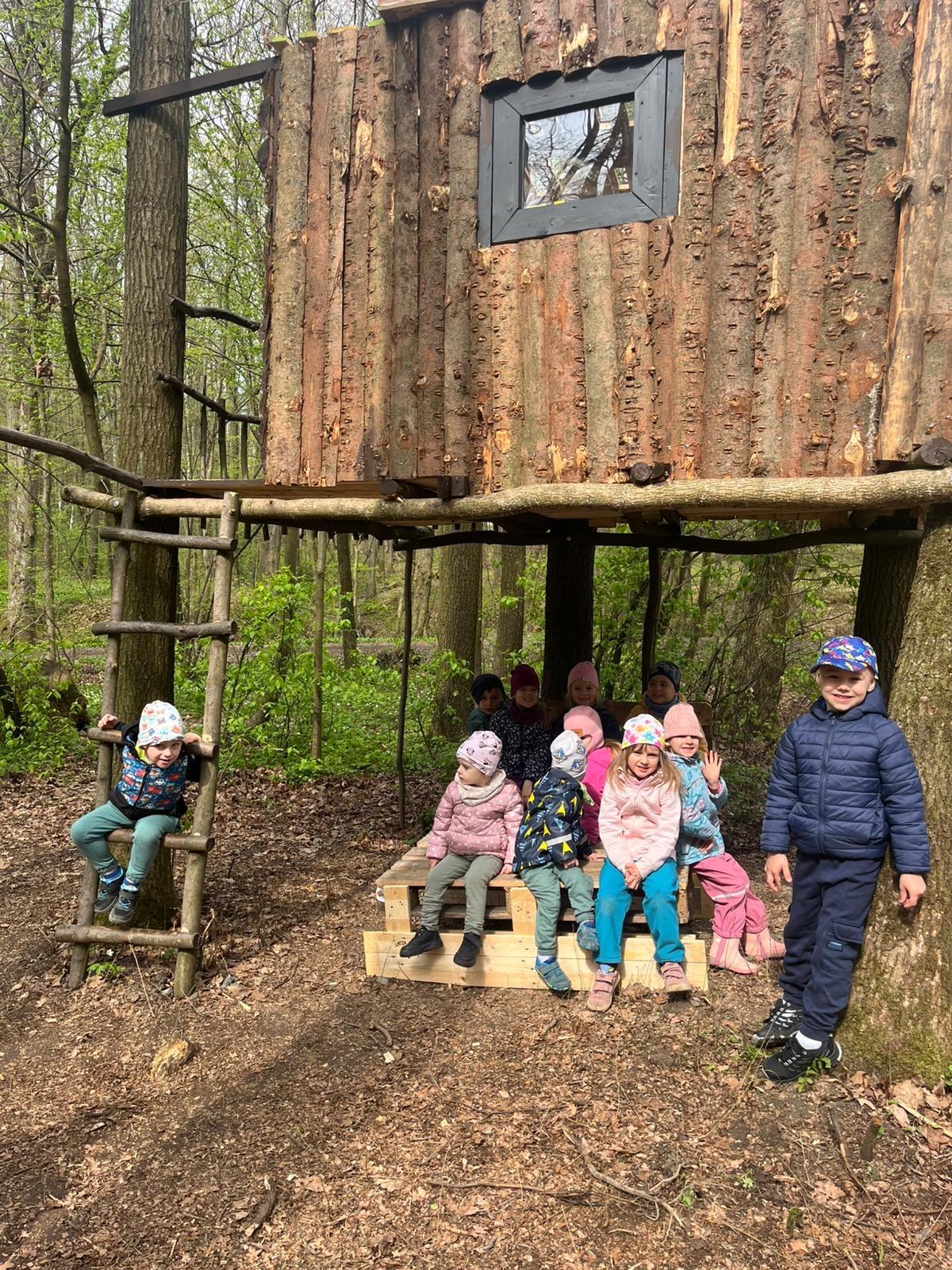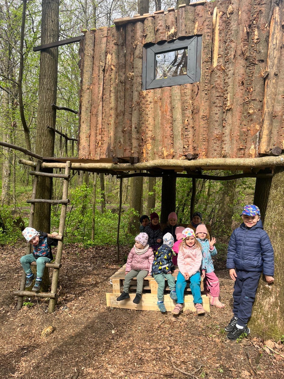 Dnes nás vedl chlapeček na vycházku k domečku, který postavil se svým tatínkem. Kamarády provedl v domečku a ještě se všichni mohli pohoupat na houpačkách. Na konec děti vyzkoušely sedačku i stoleček.