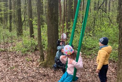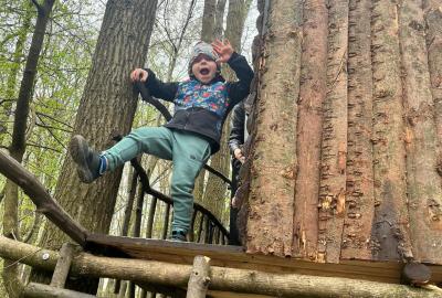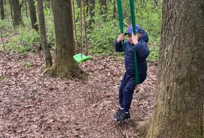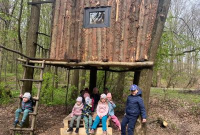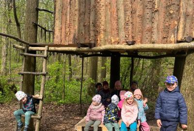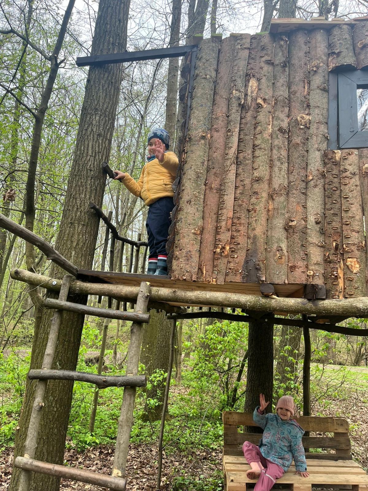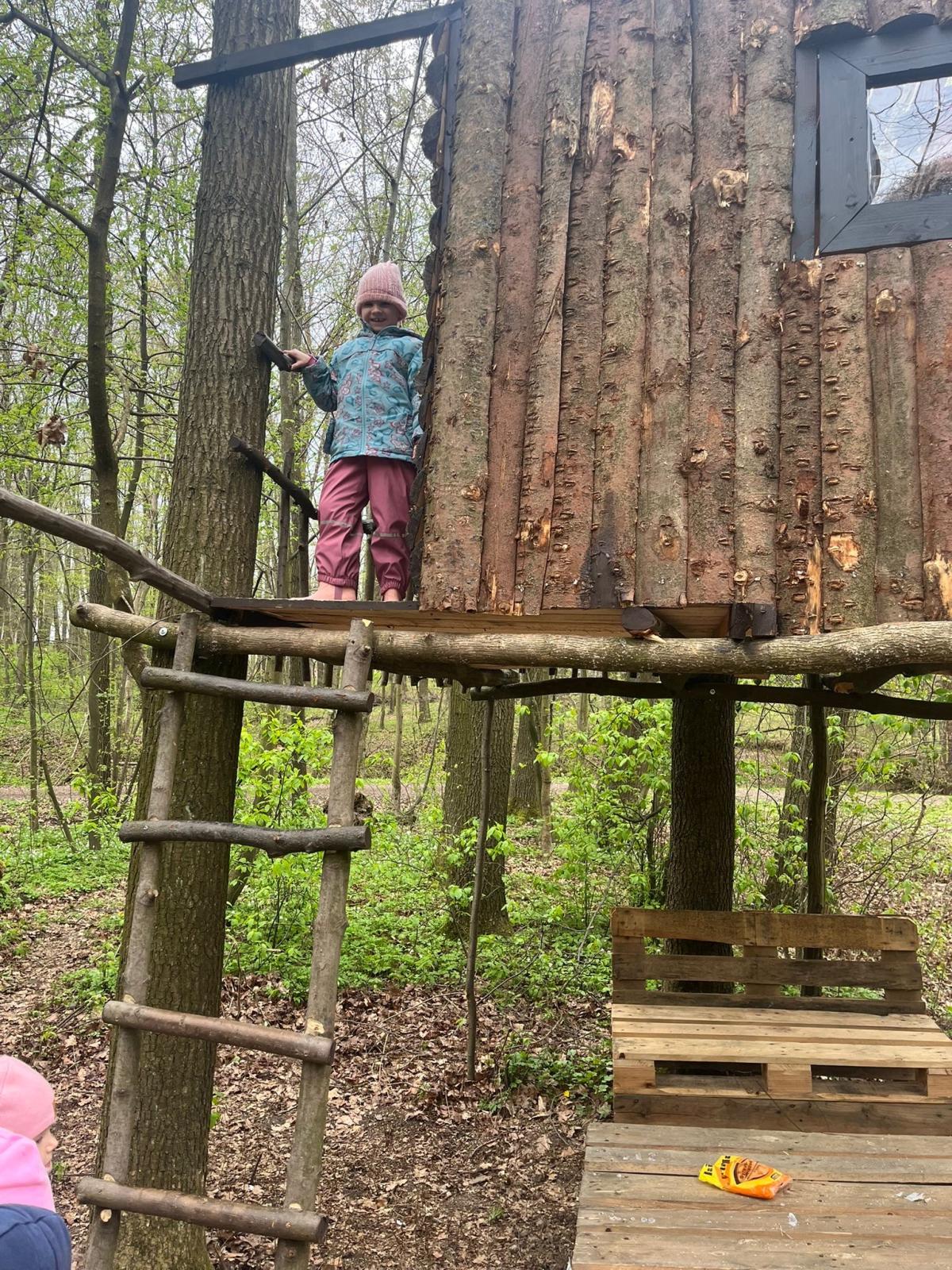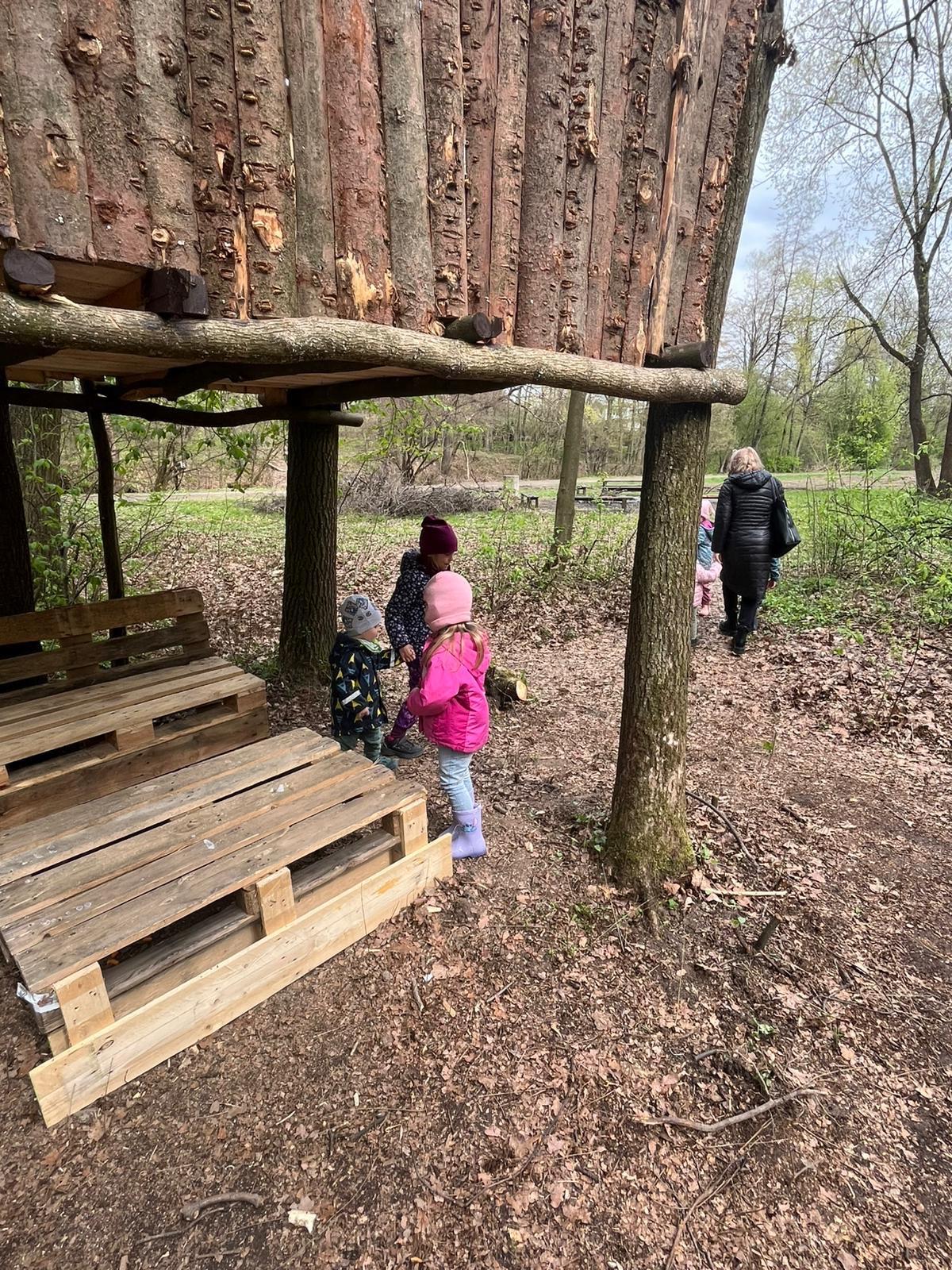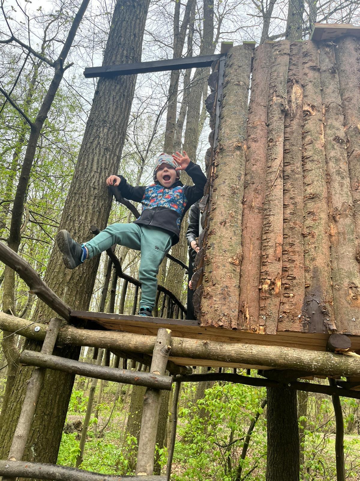 Dnes nás vedl chlapeček na vycházku k domečku, který postavil se svým tatínkem. Kamarády provedl v domečku a ještě se všichni mohli pohoupat na houpačkách. Na konec děti vyzkoušely sedačku i stoleček.