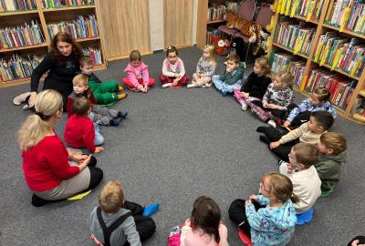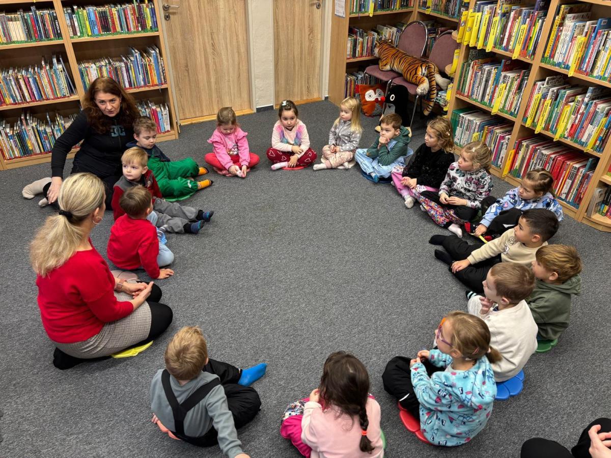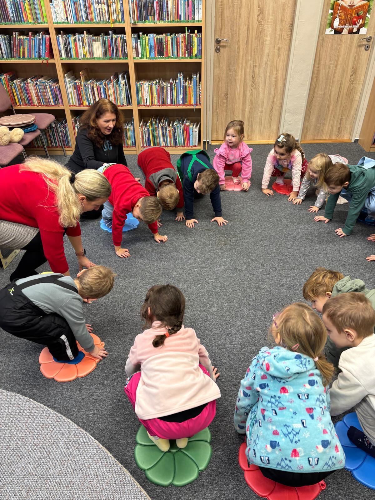 V rámci měsíčního bloku, když si s dětmi všímáme skutečnosti, že lidé mohou přírodě pomáhat, ale i škodit, jsme navštívili knihovnu na ulici Havlíčkova. Zde pro nás měla Bc. Kateřina Šildrová připraveny výchovně-vzdělávací program. Pohádka nás zavedla do moderního, ale tuze šedého a smutného království. Úkolem dětí bylo za pomoci „Blubotek“ a svých chytrých hlaviček proměnit království na zelené a veselé. Povedlo se!