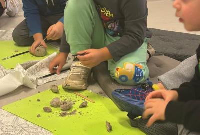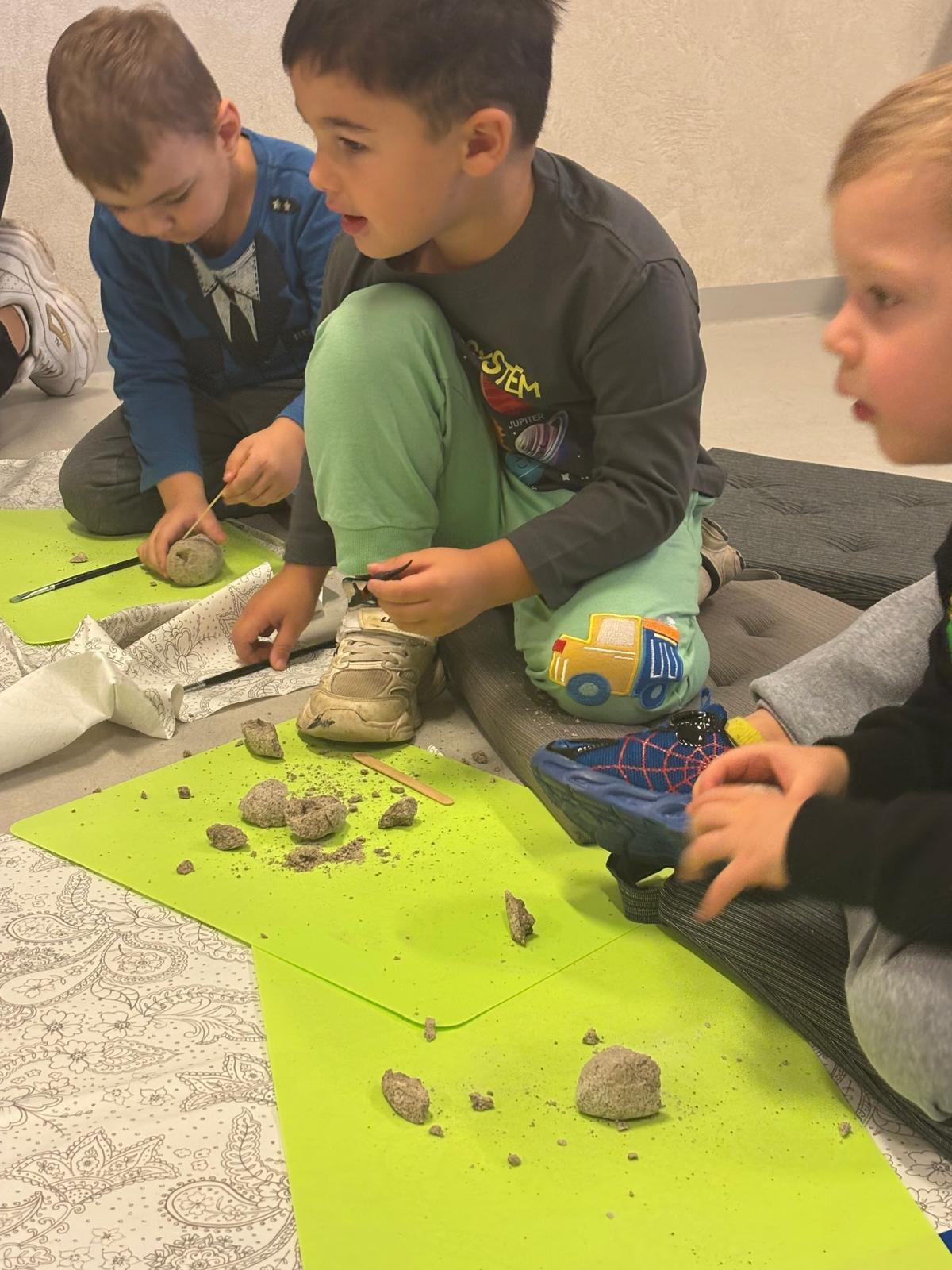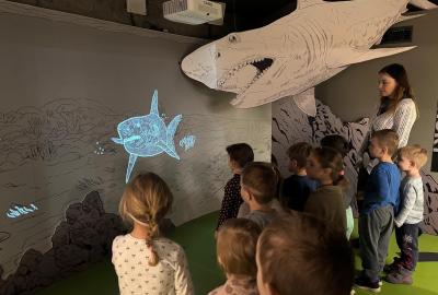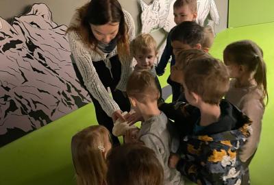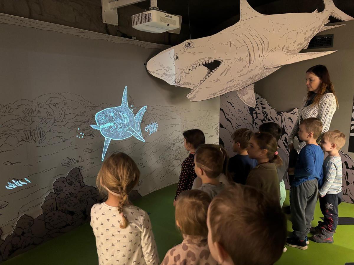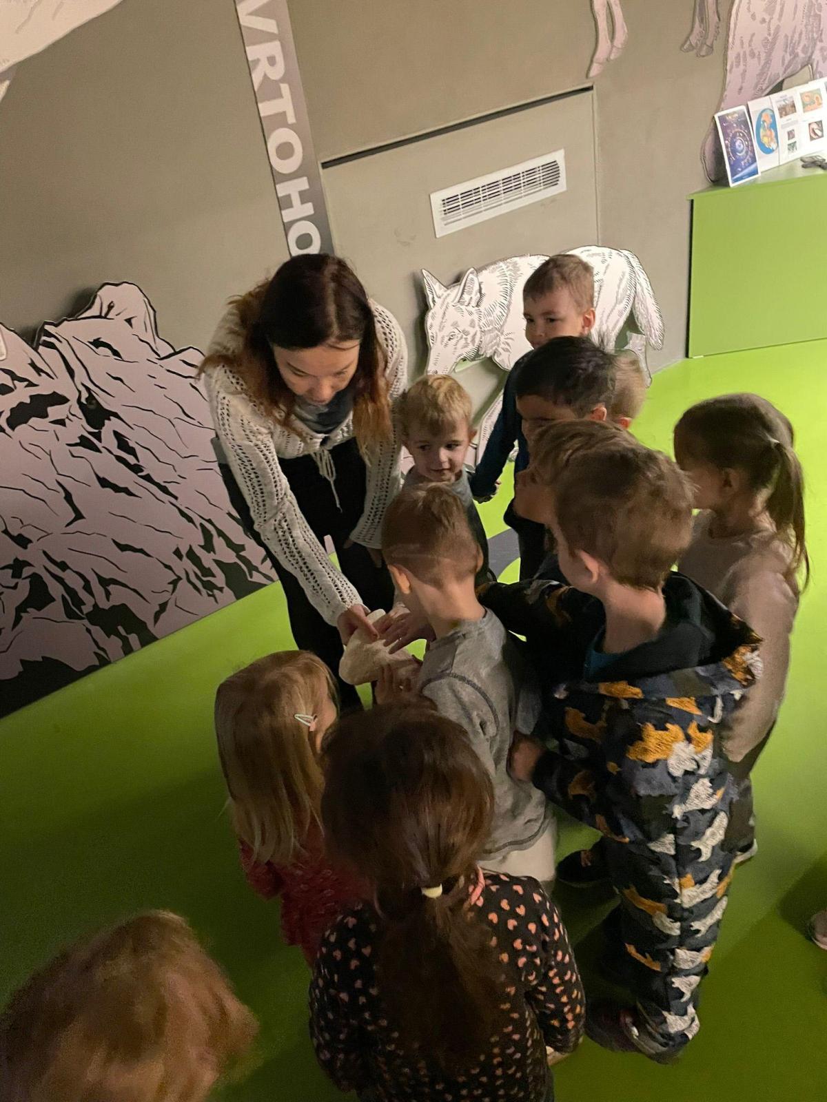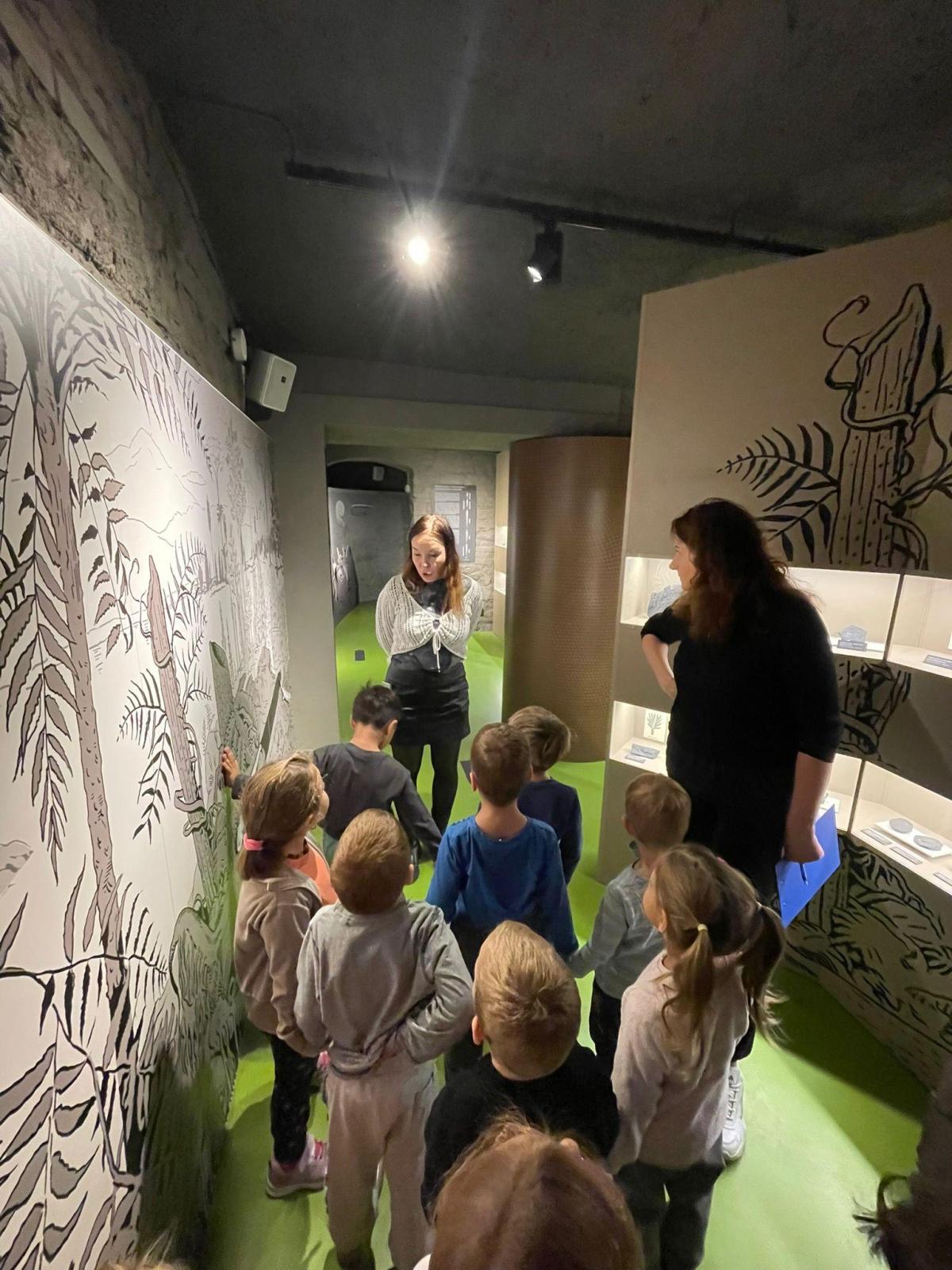 Díky zkušené paní lektorce jsme prošli prvohorami, druhohorami, třetihorami i čtvrtohorami. Seznámili jsme se s živočichy, kteří se v jednotlivých obdobích potulovaly krajinou i s některými pozůstatky jejich těl. Prohlédli jsme si starověké rostliny z kterých za několik milion let vzniklo uhlí. Navštívili jsme havířskou štolu, kde se uhlí těžilo za pomocí koní i kde došlo k závalu. Na závěr se z nás stali badatelé, kteří pomocí špachtlí a štětců, vytesávaly dinosaury uvězněné ve zkamenělých vejcích.