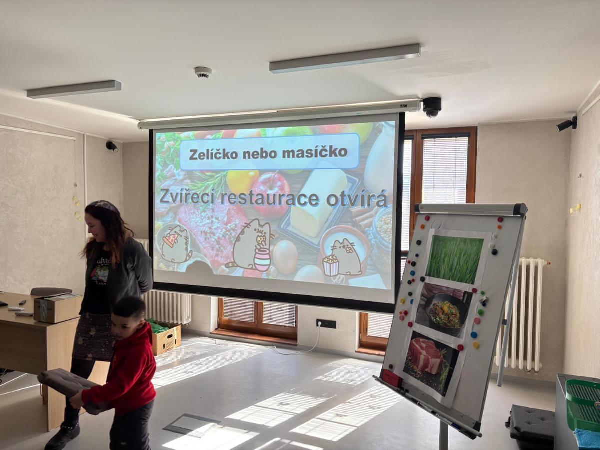V rámci programu „Zelíčko nebo masíčko“ se děti proměnily v malé zoology. Zjišťovaly, kdo co jí, jaký je rozdíl mezi býložravcem, masožravcem a všežravcem. Prohlédly si čelisti jednotlivých zástupců zmíněných skupin. Odvážně se vrhly na ledovou záchranu zvířat, kdy odvážně se vrhly na ledovou záchranu zvířat, kdy pomoci teplé vodní lázně trpělivě vysvobozovaly zvířátka zamrzlé v ledových baloncích. Zachráněna zvířátka, pozvala na zvířecí hostinu, během níž každému zvířátku na talířích správně naservírovaly jeho přirozenou potravu.