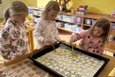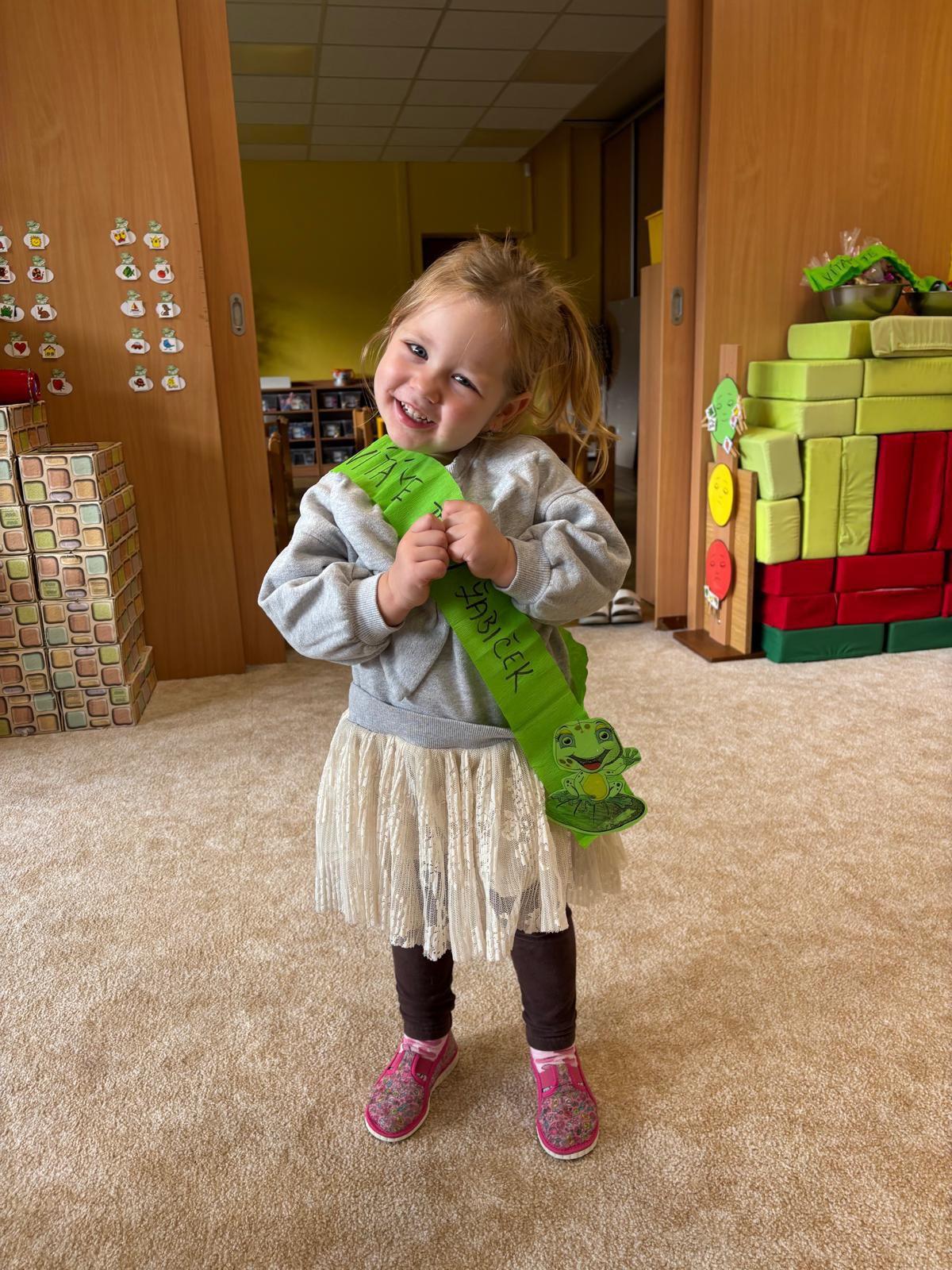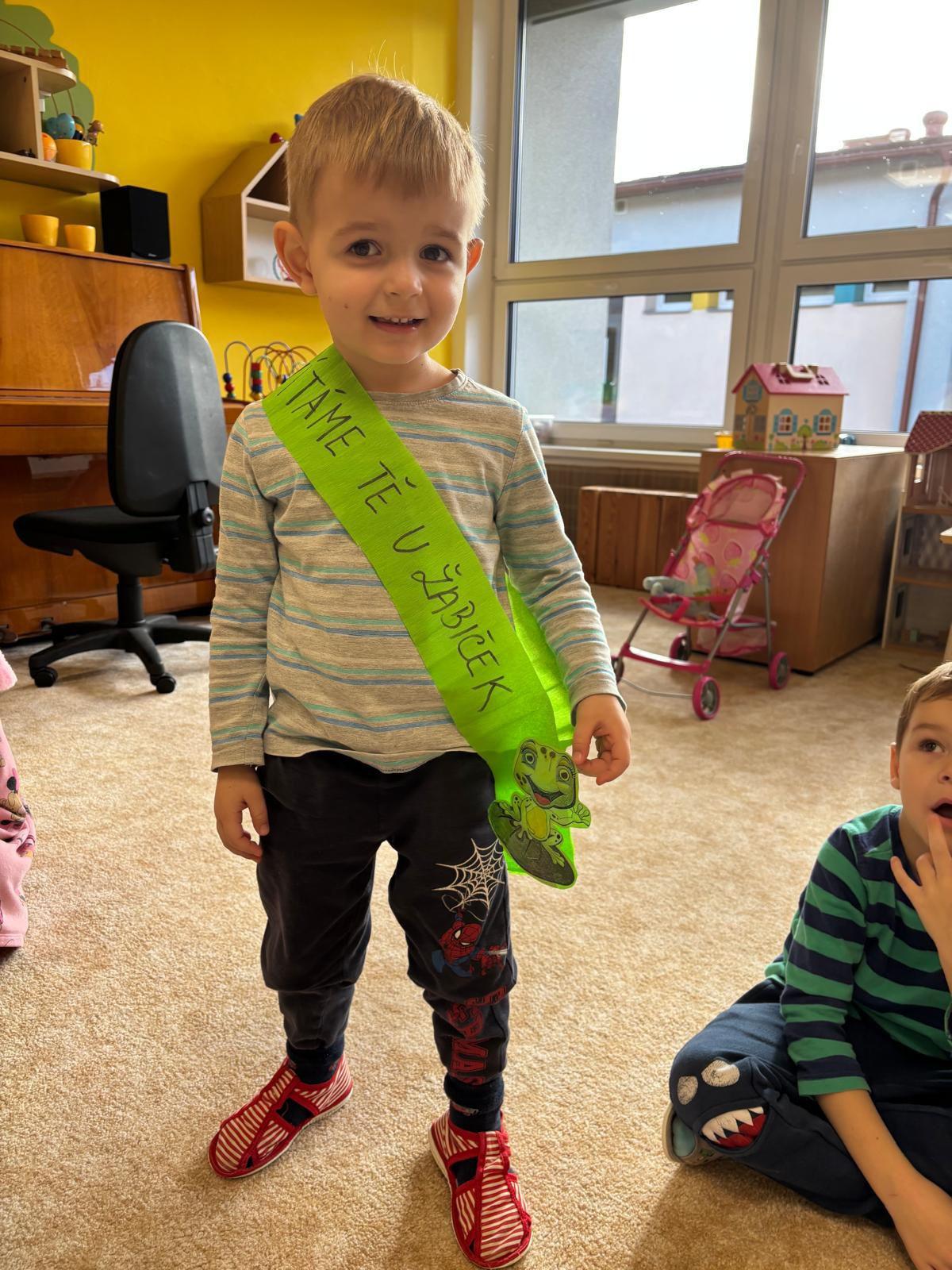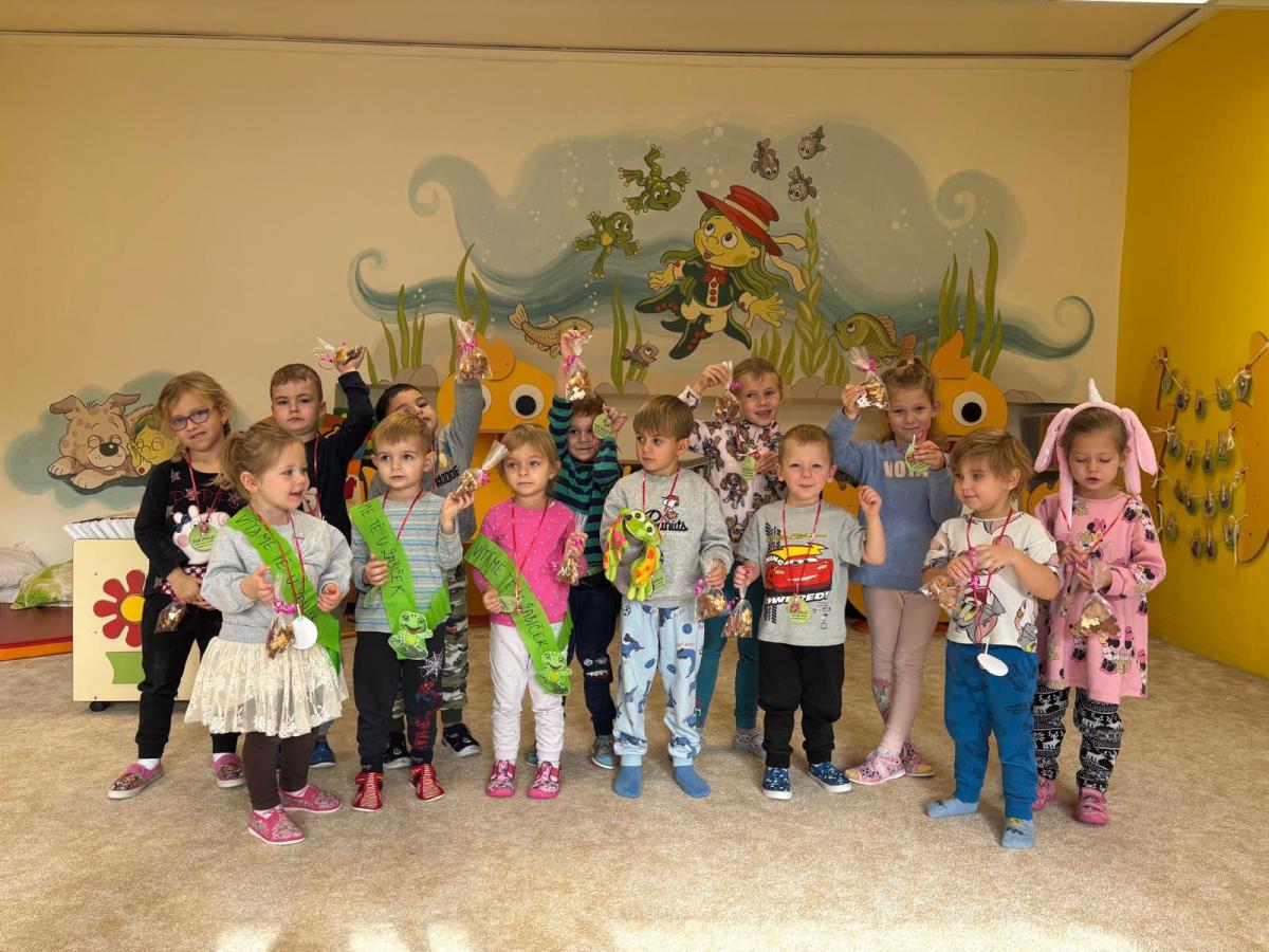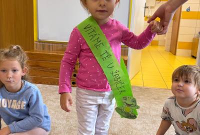 mezi nás přišlo 6 nových kamarádů. Přivítali jsme je jak se patří. Prošli s námi žabí stezku, aby se co nejvíce dozvěděli o životě žáby, složily žabí slib, obdrželi žabí šerpu a zúčastnili se hostiny plné perníčků ve tvaru žabiček, které jsme jim vlastnoručně upekli. Velkou zábavou pro nás bylo i vytváření vlastních pytlíčků na náhradní oblečení, na kterém dominovala jak jinak než žabička. Věříme, že si děti užily mnoho zábavy.