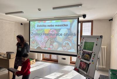 V rámci programu „Zelíčko nebo masíčko“ se děti proměnily v malé zoology. Zjišťovaly, kdo co jí, jaký je rozdíl mezi býložravcem, masožravcem a všežravcem. Prohlédly si čelisti jednotlivých zástupců zmíněných skupin. Odvážně se vrhly na ledovou záchranu zvířat, kdy odvážně se vrhly na ledovou záchranu zvířat, kdy pomoci teplé vodní lázně trpělivě vysvobozovaly zvířátka zamrzlé v ledových baloncích. Zachráněna zvířátka, pozvala na zvířecí hostinu, během níž každému zvířátku na talířích správně naservírovaly jeho přirozenou potravu.