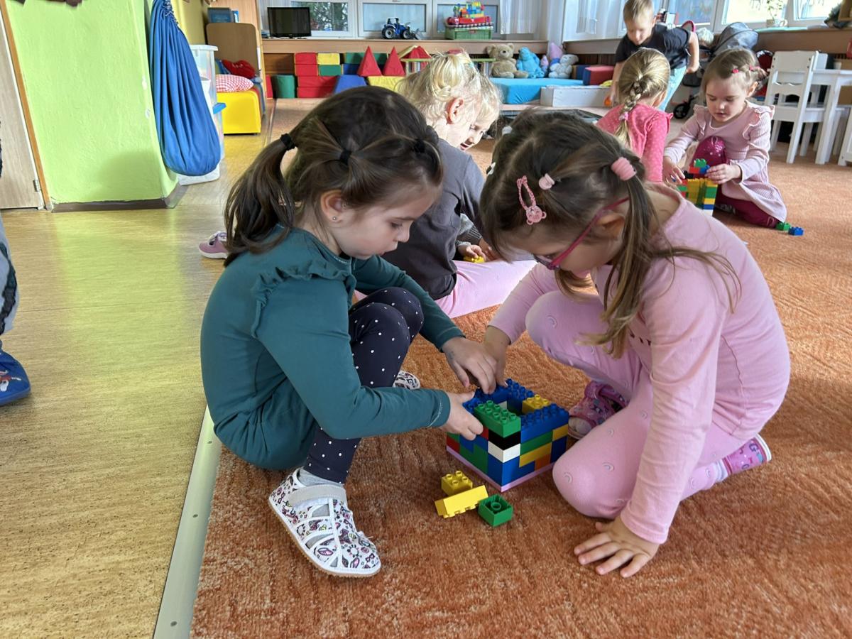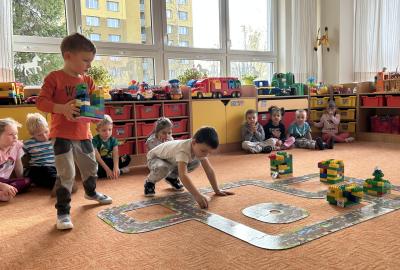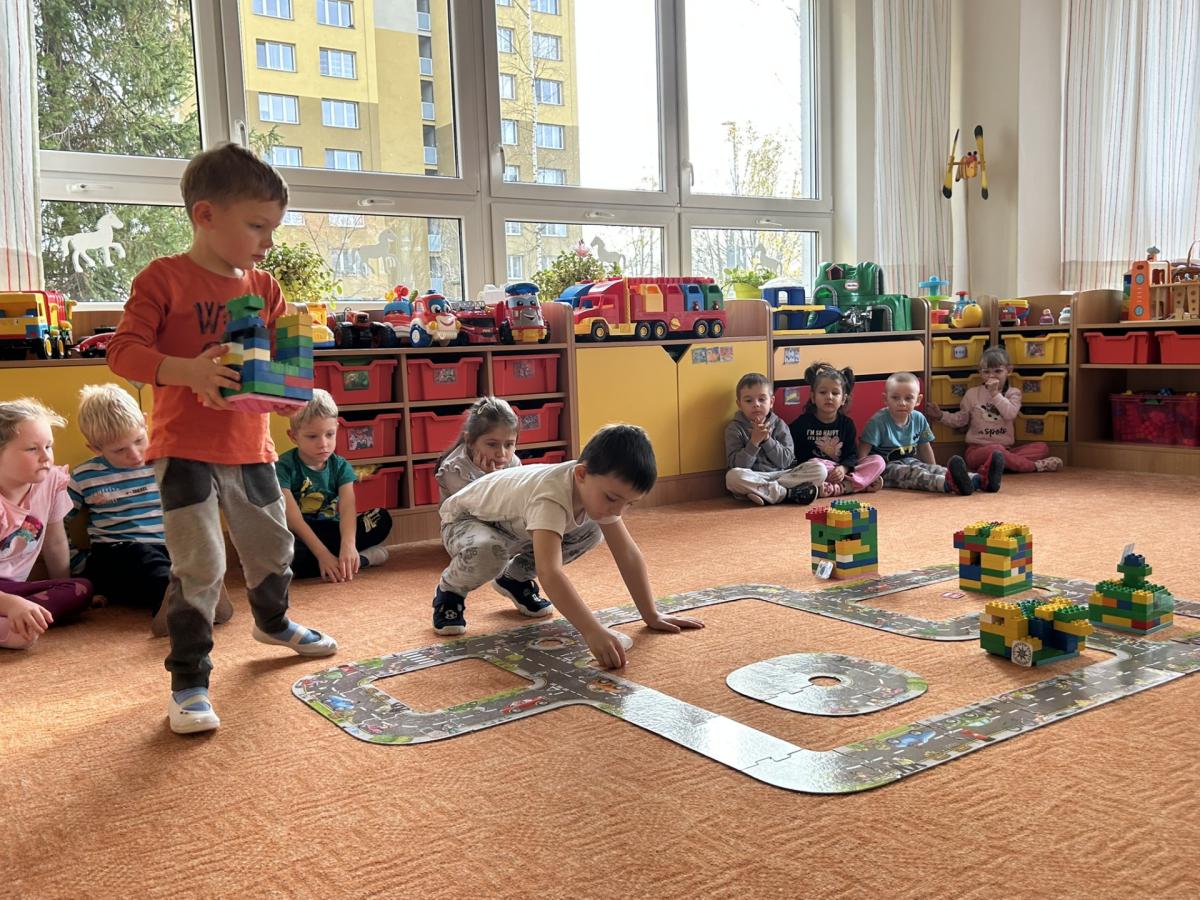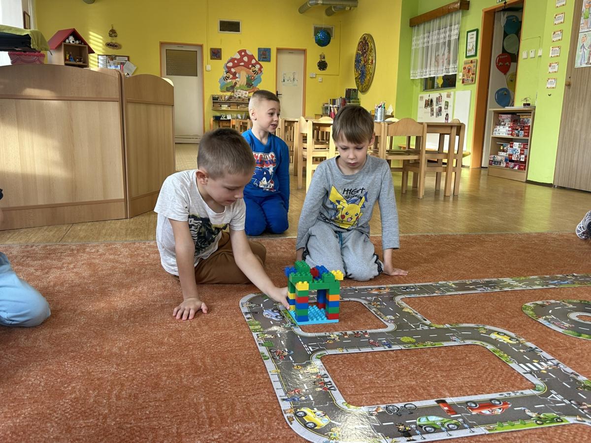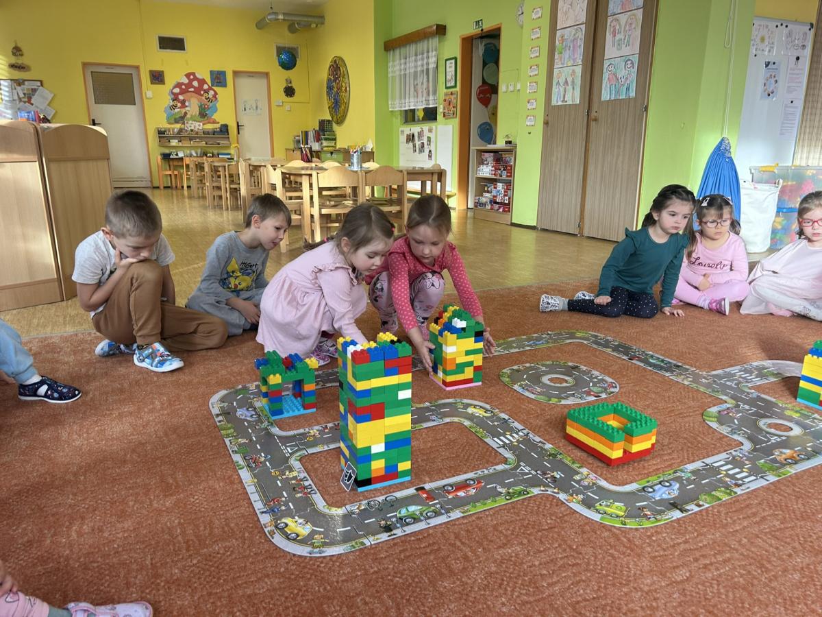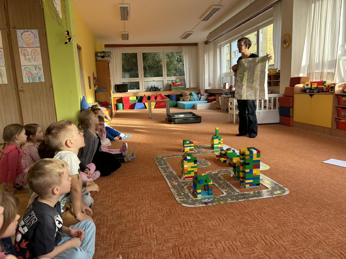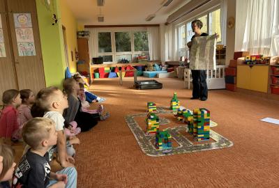 Naší školku navštívila lektorka Malé technické univerzity s programem STAVITEL MĚSTA a s krabicí plnou stavebních kostek a speciální soupravou prvků a výkresů, díky kterým se děti vžily do role stavitele a kartografa. Nejdříve si děti postavily důležité veřejné budovy (nemocnici, divadlo, požární zbrojnici...), společně sestavily silnici, město a vyzkoušely si vytvořit vlastní mapu města.