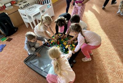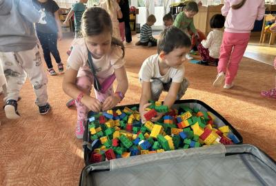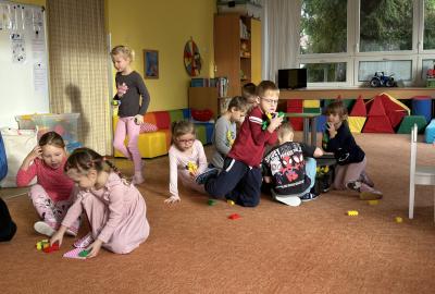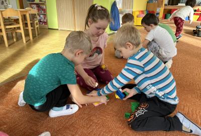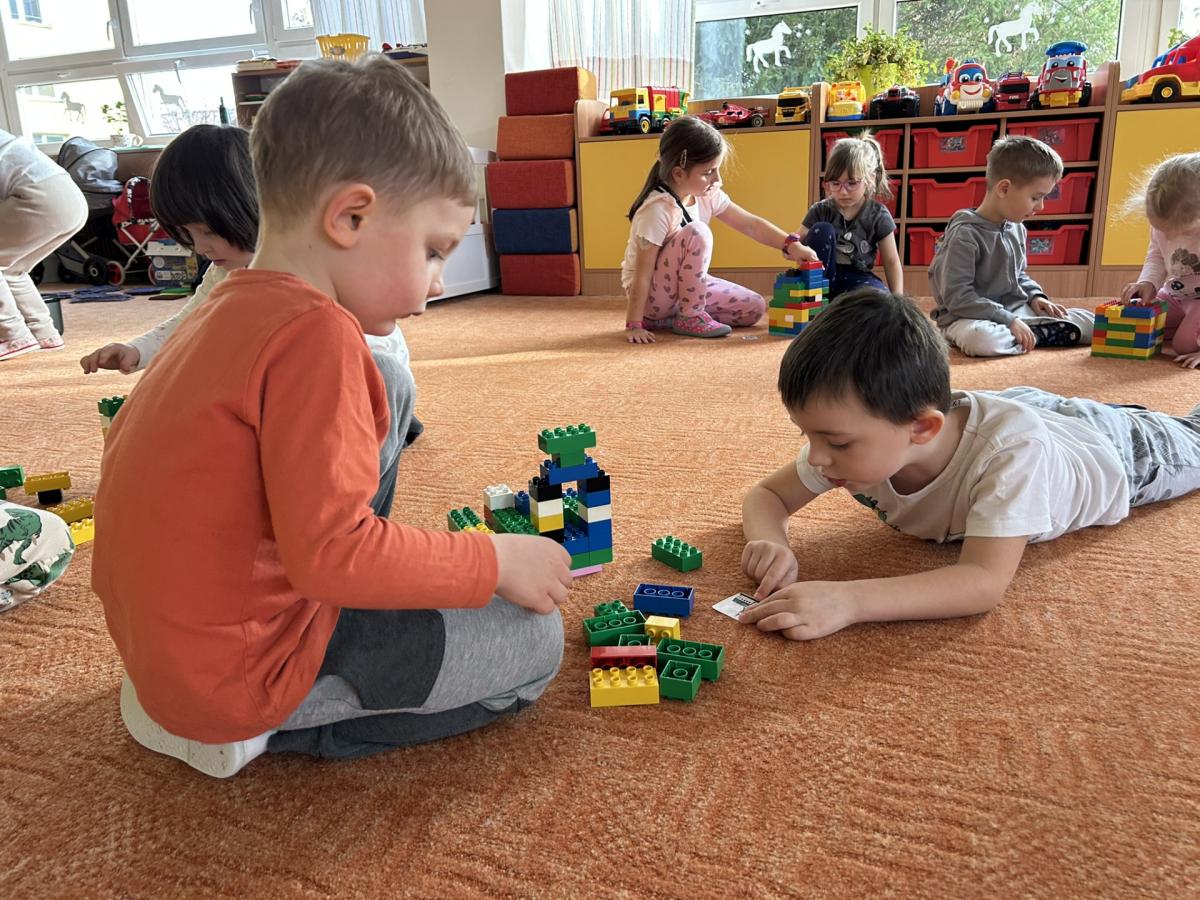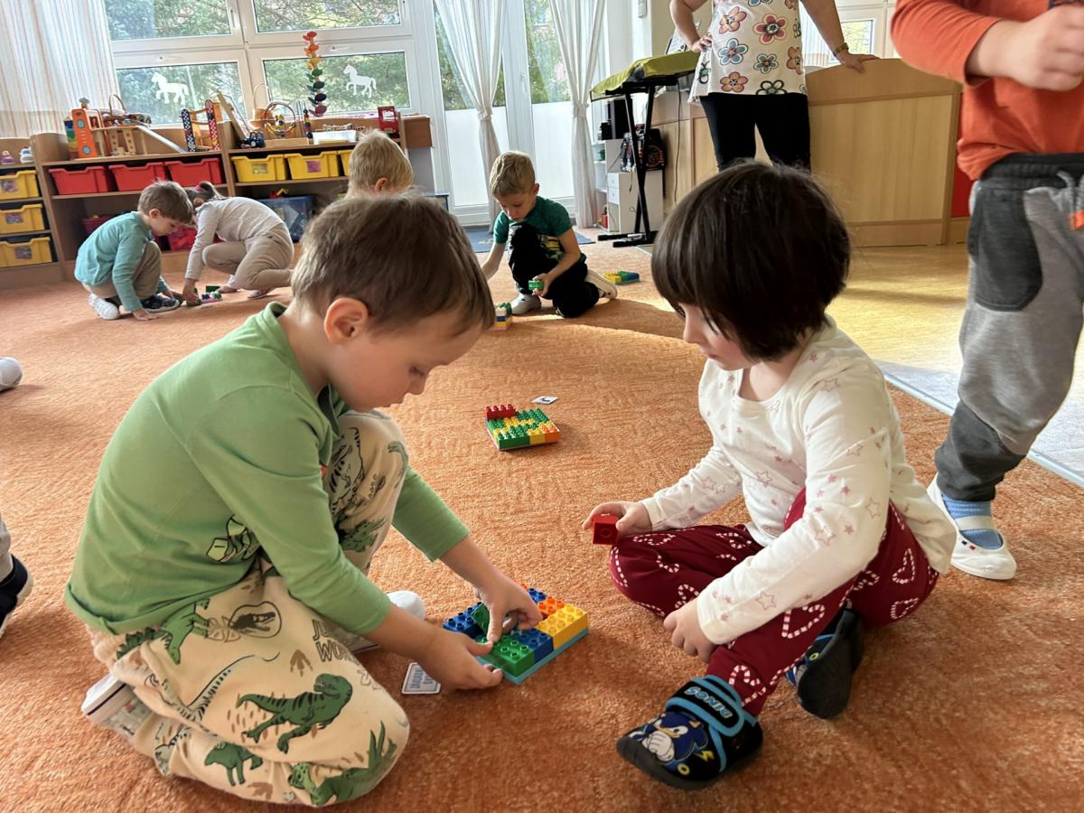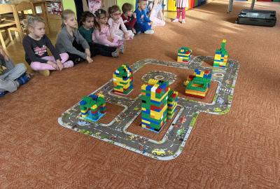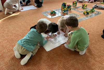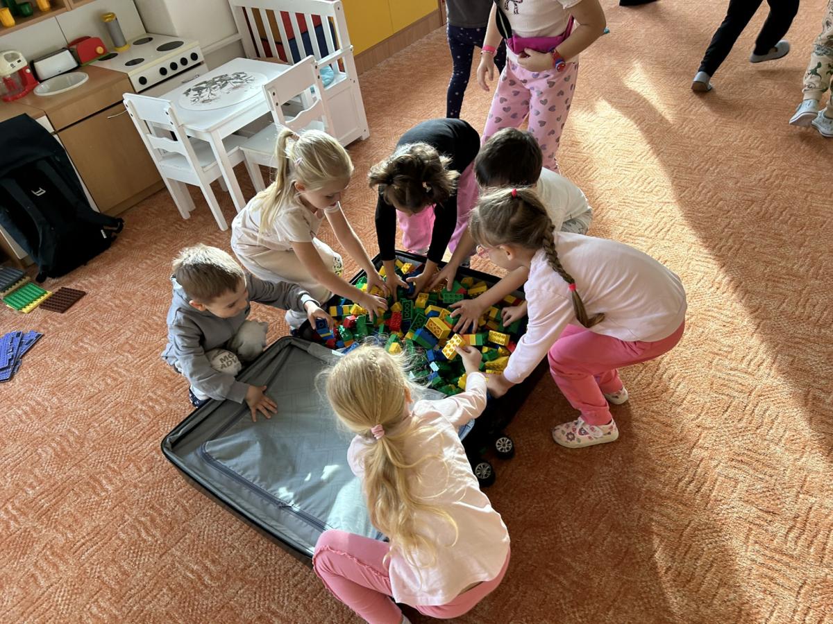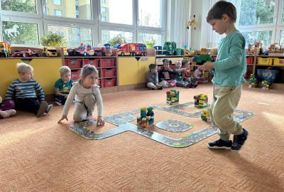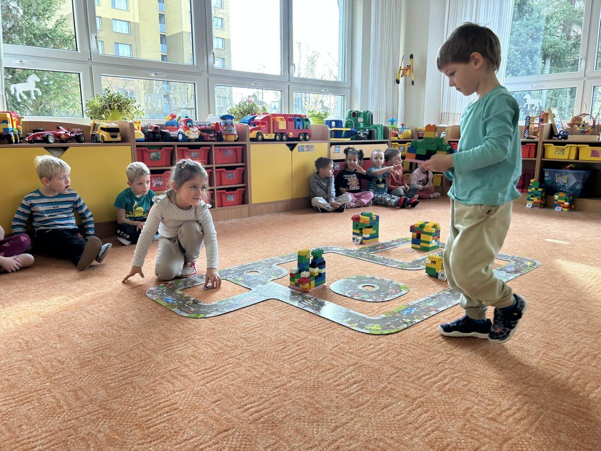 Naší školku navštívila lektorka Malé technické univerzity s programem STAVITEL MĚSTA a s krabicí plnou stavebních kostek a speciální soupravou prvků a výkresů, díky kterým se děti vžily do role stavitele a kartografa. Nejdříve si děti postavily důležité veřejné budovy (nemocnici, divadlo, požární zbrojnici...), společně sestavily silnici, město a vyzkoušely si vytvořit vlastní mapu města.