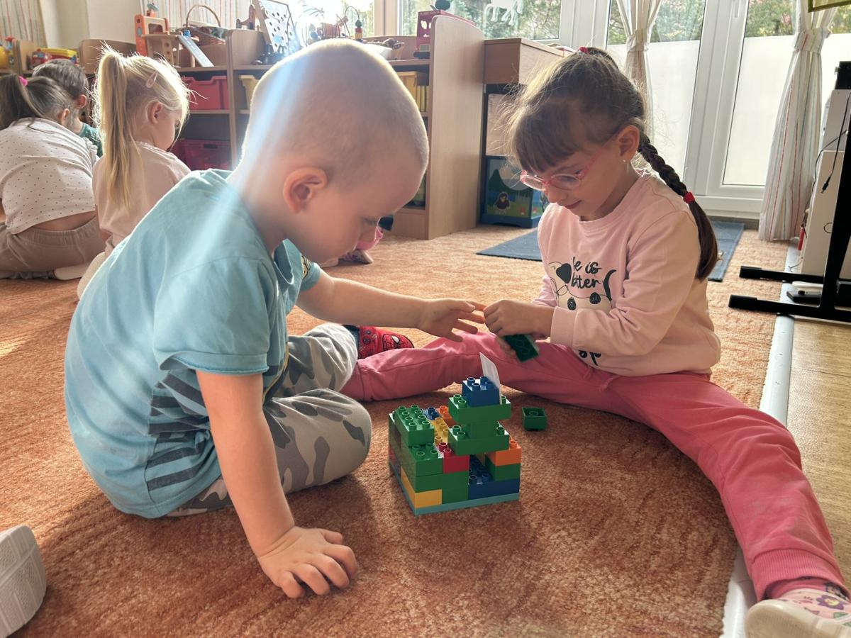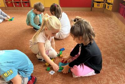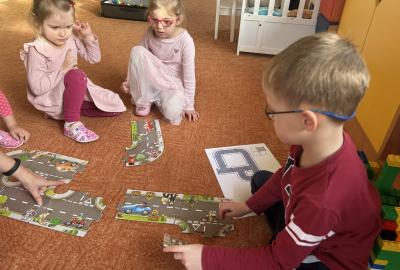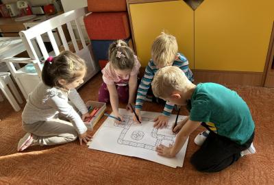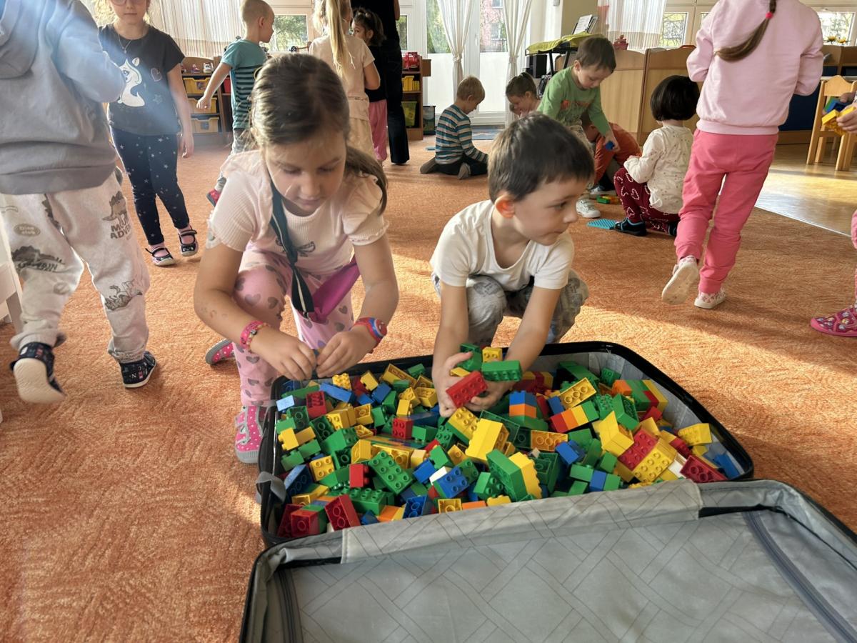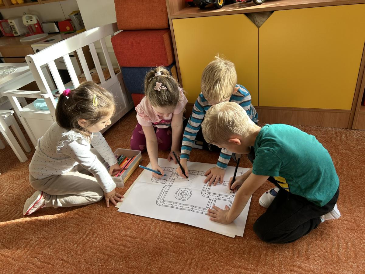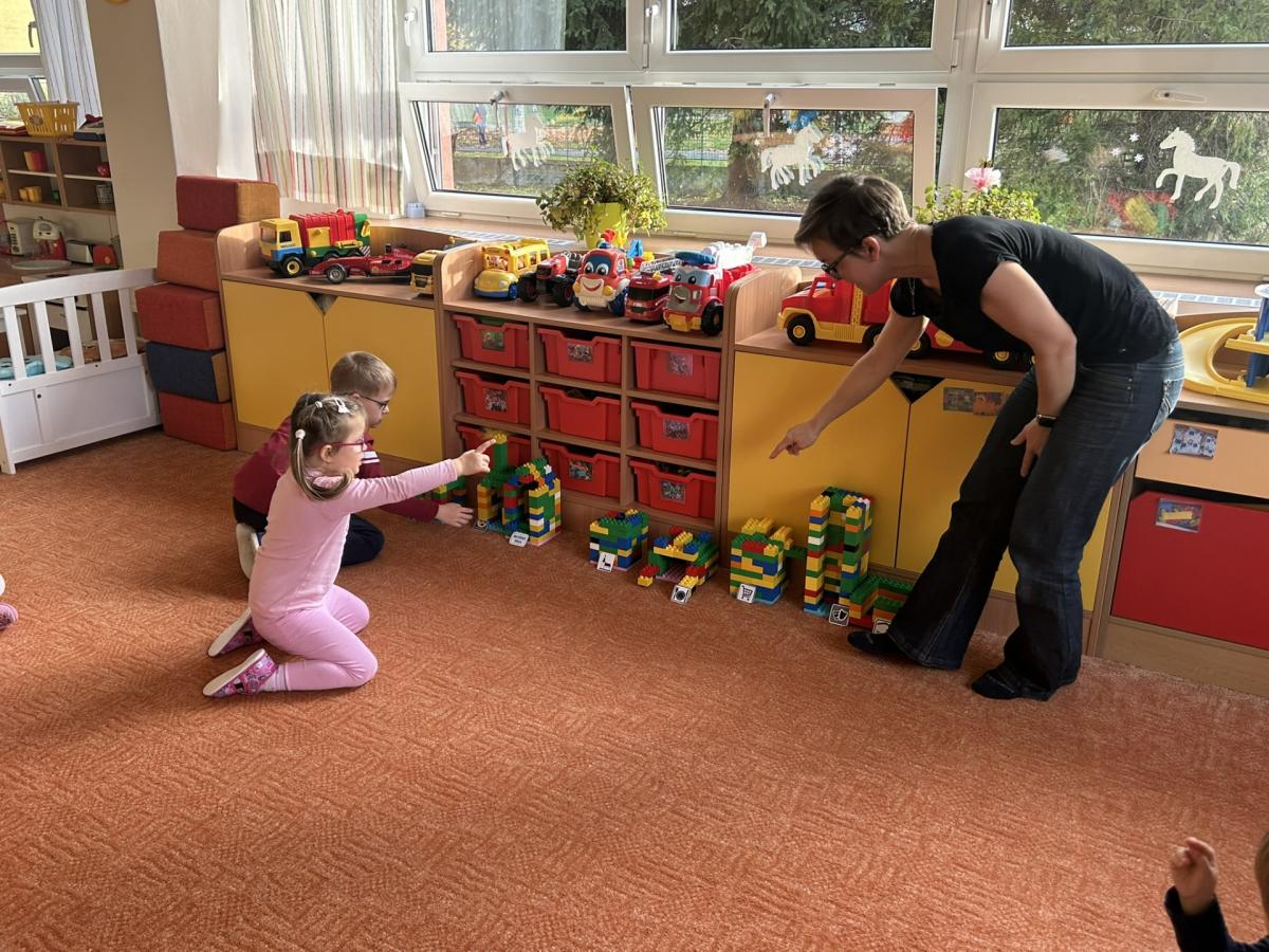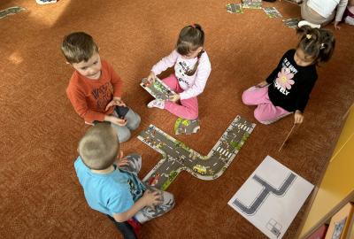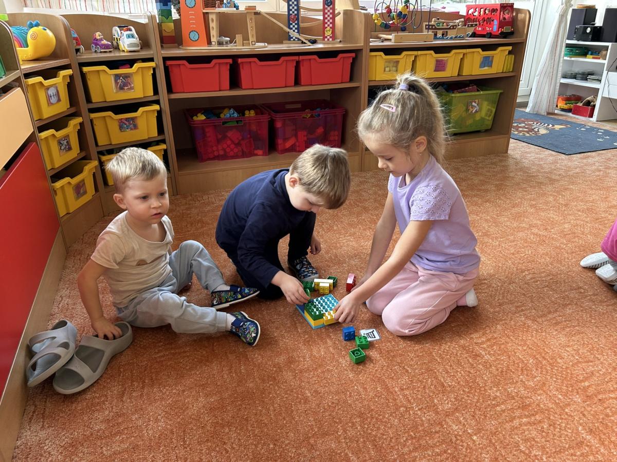 Naší školku navštívila lektorka Malé technické univerzity s programem STAVITEL MĚSTA a s krabicí plnou stavebních kostek a speciální soupravou prvků a výkresů, díky kterým se děti vžily do role stavitele a kartografa. Nejdříve si děti postavily důležité veřejné budovy (nemocnici, divadlo, požární zbrojnici...), společně sestavily silnici, město a vyzkoušely si vytvořit vlastní mapu města.