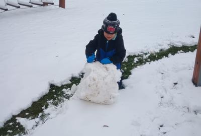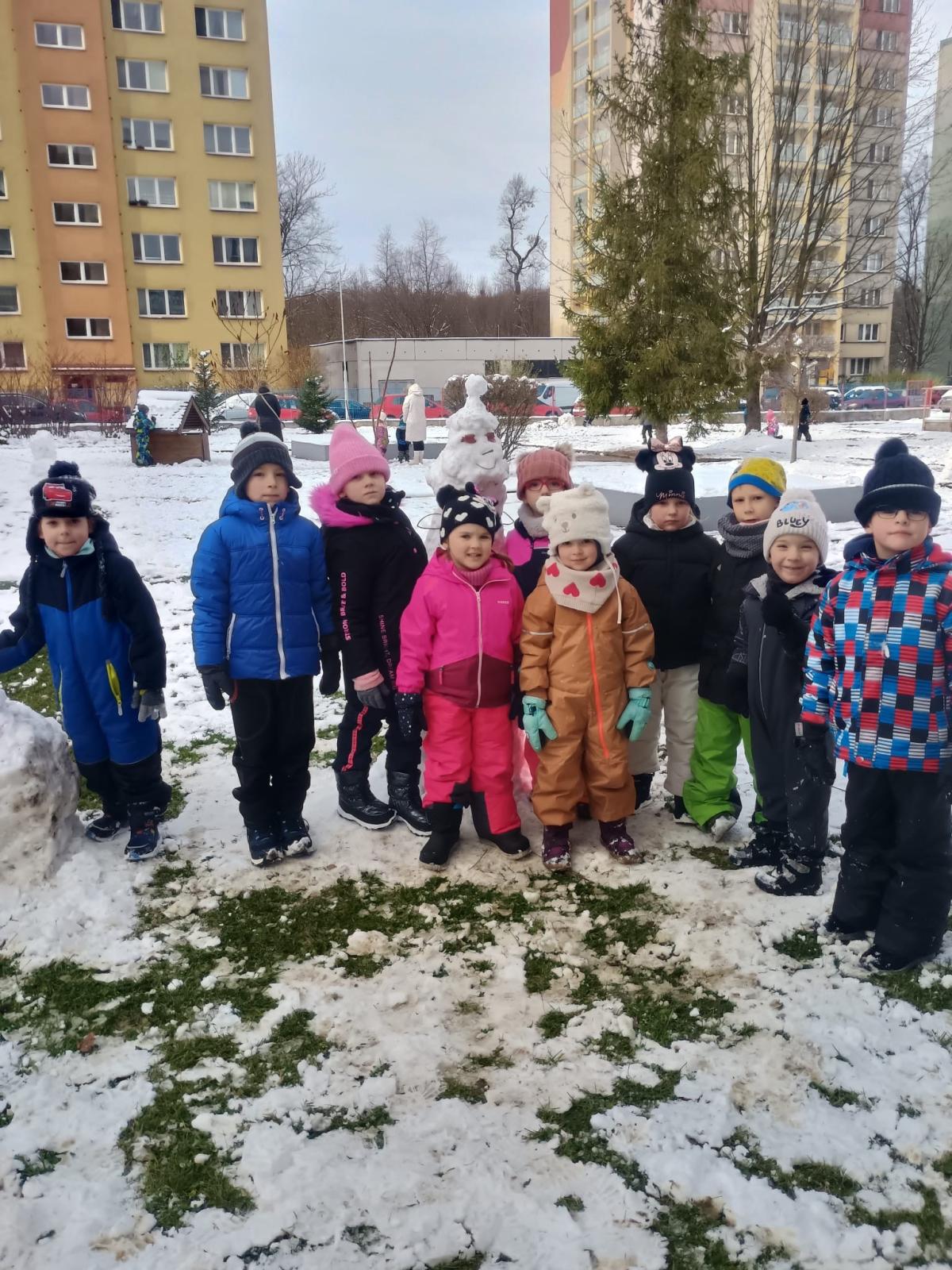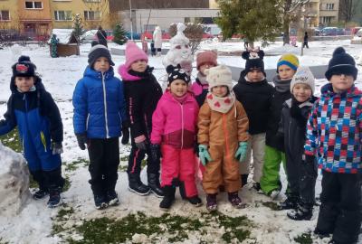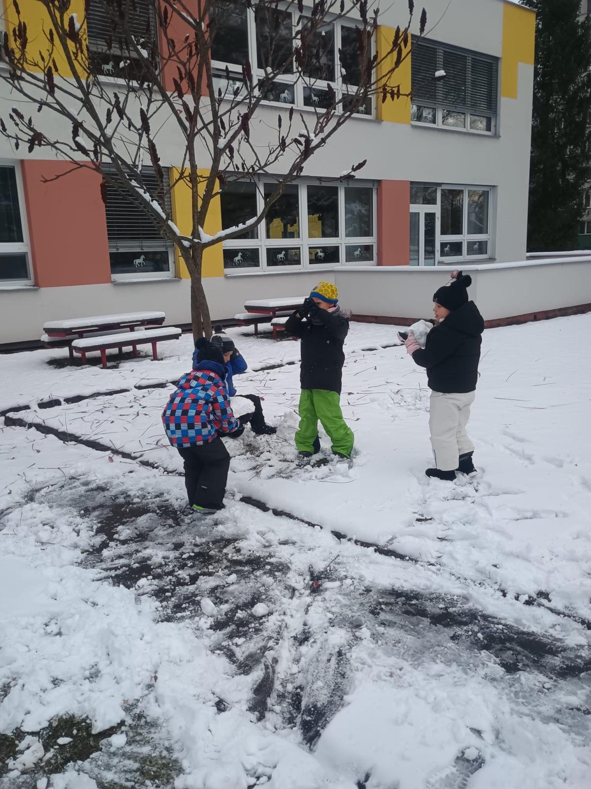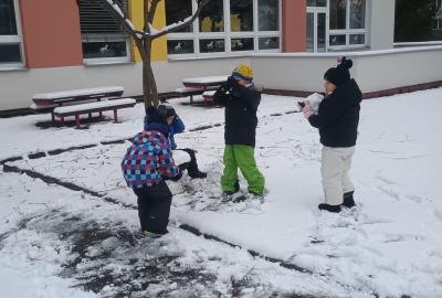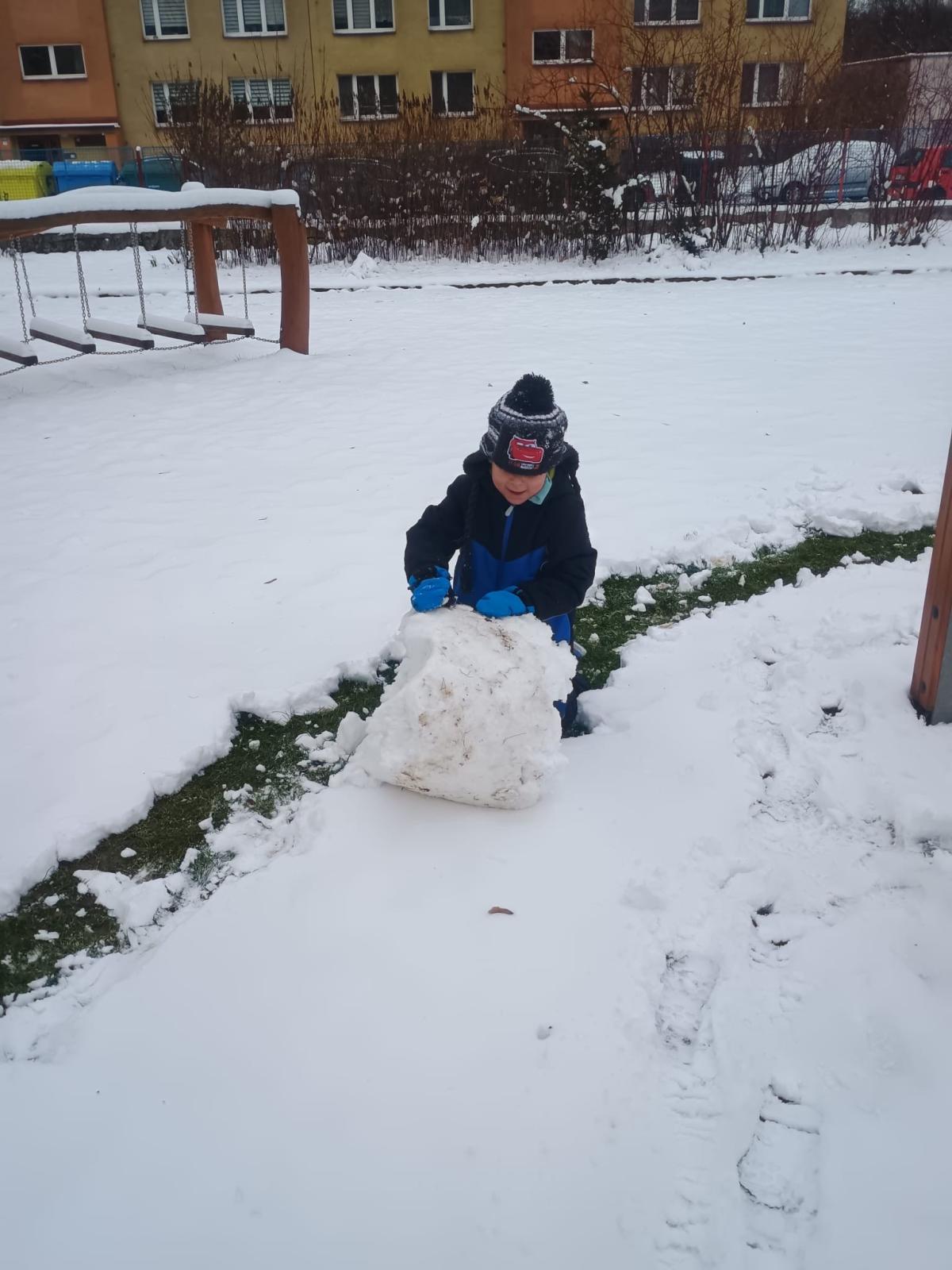 Jedna, druhá, třetí koule, klobouk, nos, sněhulák chodí bos! Všechny nás ta zima láká, postavíme sněhuláka.
