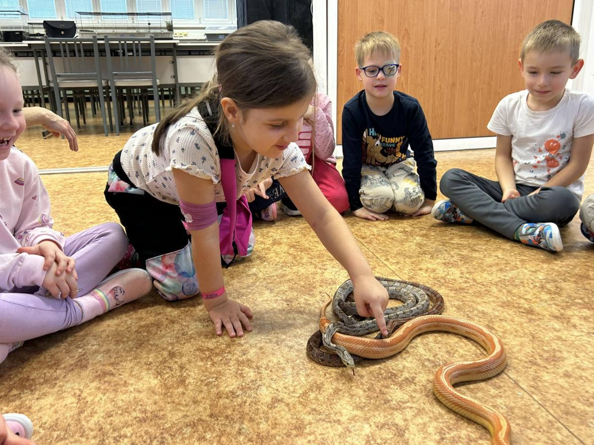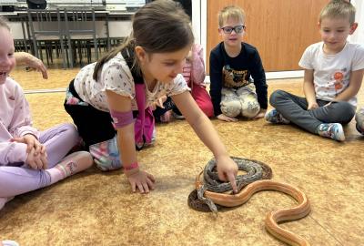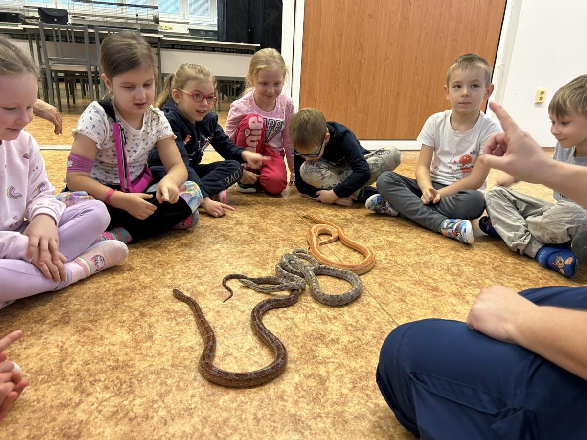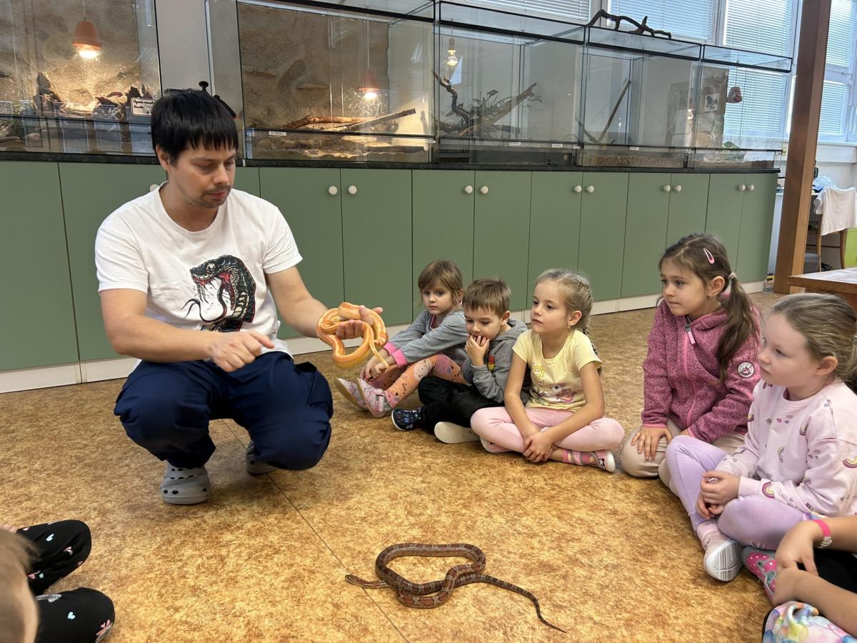 Děti se seznámily se různými druhy plazů, mezi které patří ještěři, hadi a želvy. Děti si plazy mohly prohlédnout, na některé si dokonce sáhnout a dozvěděly se mnoho zajímavostí.