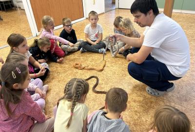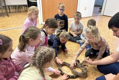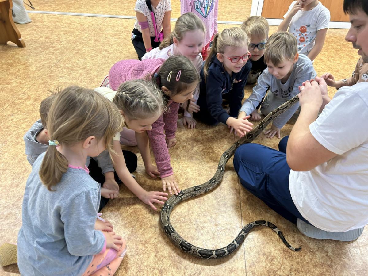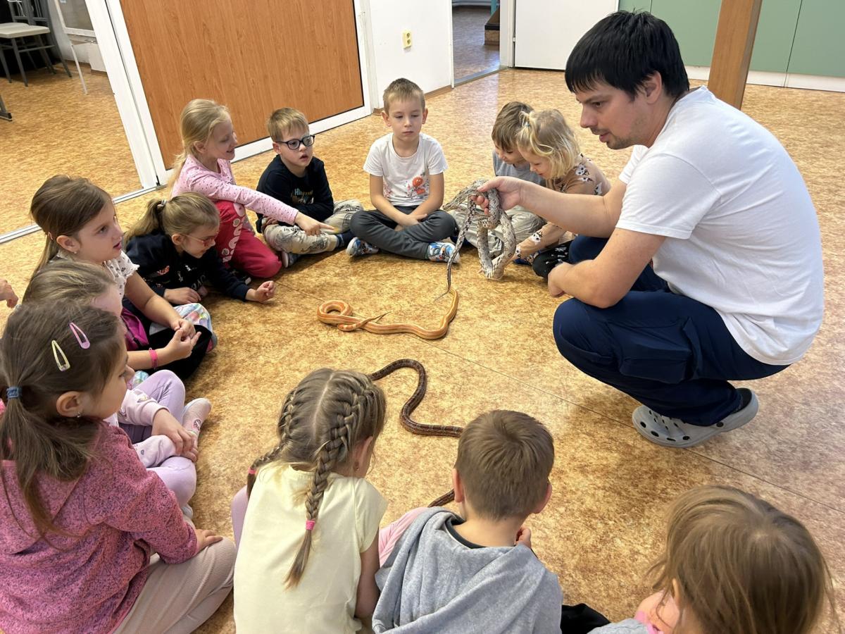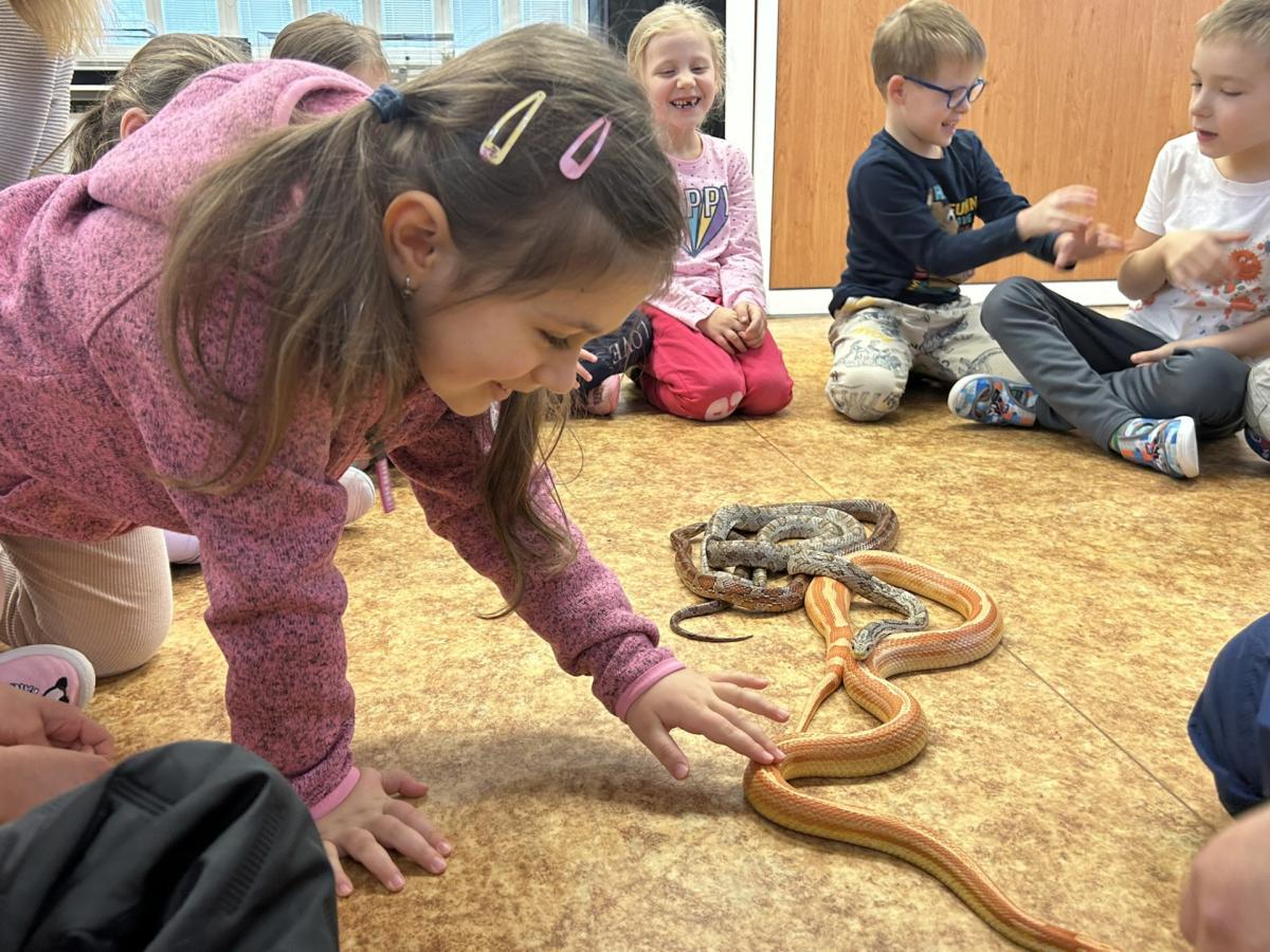 Děti se seznámily se různými druhy plazů, mezi které patří ještěři, hadi a želvy. Děti si plazy mohly prohlédnout, na některé si dokonce sáhnout a dozvěděly se mnoho zajímavostí.
