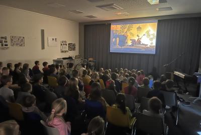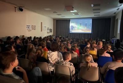 Velmi svižným tempem jsme s dětmi vyrazili do "Kina na Studni". Připravili jsme sál, kde se sešlo 150 dětí a 8 vychovatelů. Bylo to poprvé a myslím, že do kina vyrazíme znovu.