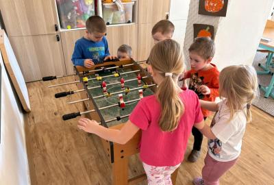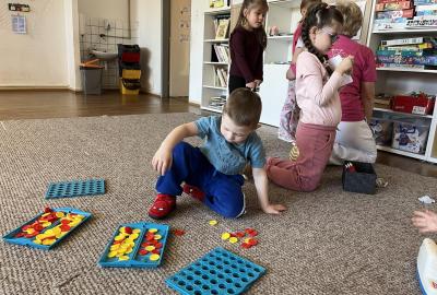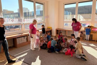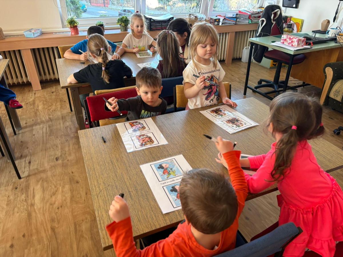 Je to již třetí rok, kdy jsme navázali spolupráci s naší MŠ Ostravská. Opět za námi přišly paní učitelky s dětmi. Připravili jsme si pro děti krátký program - hledání rozdílů a sladkého pokladu. Poté si děti hrály v oddělení se stavebnicí, malovali obrázky a většina využila sportovní třídu, kde si zahráli florbal a byli v kostkovišti.