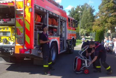 Hasiči dětem ukázali a vysvětlili techniku a vybavení aut. Nechyběla také ukázka výsuvného žebříku, větráku, hydraulických kleští, hadic a dalších zajímavostí. Děti se dozvěděly spoustu informací o pracovní náplni hasiče, jak vypadá výstroj a výzbroj hasičů a k čemu se používá. Velice poučné byly příběhy z výjezdů.