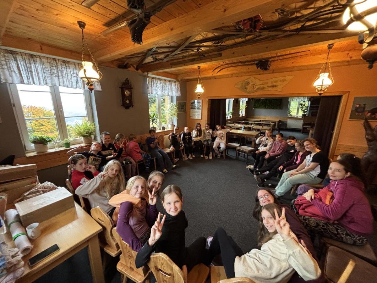 Už cestou na chatu jsme hráli hry, které byly pro celou třídu a do horského terénu se báječně hodily, navíc byly zábavné. I když počasí nebylo každý den ideální, neodradilo nás to. Užili jsme si připravené aktivity. Venku i v chatě jsme hráli týmové hry, u kterých jsme trénovali spolupráci a vzájemný respekt. Učili jsme se naslouchat jeden druhému, oceňovat se. Ukázaly se naše silné stránky, schopnosti i dovednosti. A večer jsme zažili stezku odvahy, která nám potvrdila, že s podporou ostatních zvládneme i náročné situace. Dva dny plné pohybu, smíchu i dobrodružství prověřily týmového ducha i kamarádství.