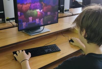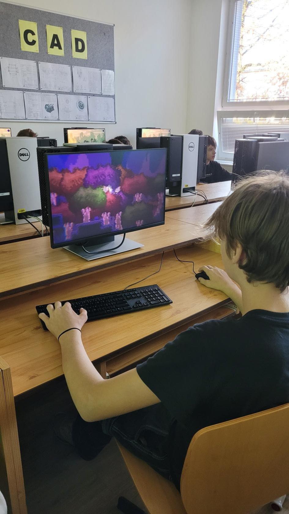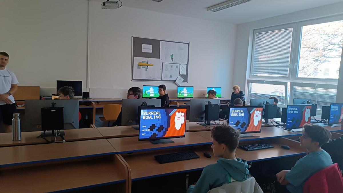 Studenti průmyslové školy si pro naše žáky připravili poutavou prezentaci o tvorbě PC her, ve které ukázali své vlastní projekty a přiblížili, co všechno obnáší práce mladého vývojáře. Na závěr si každý žák vyrobil svou vlastní placku, kterou si mohl odnést domů jako malou památku.