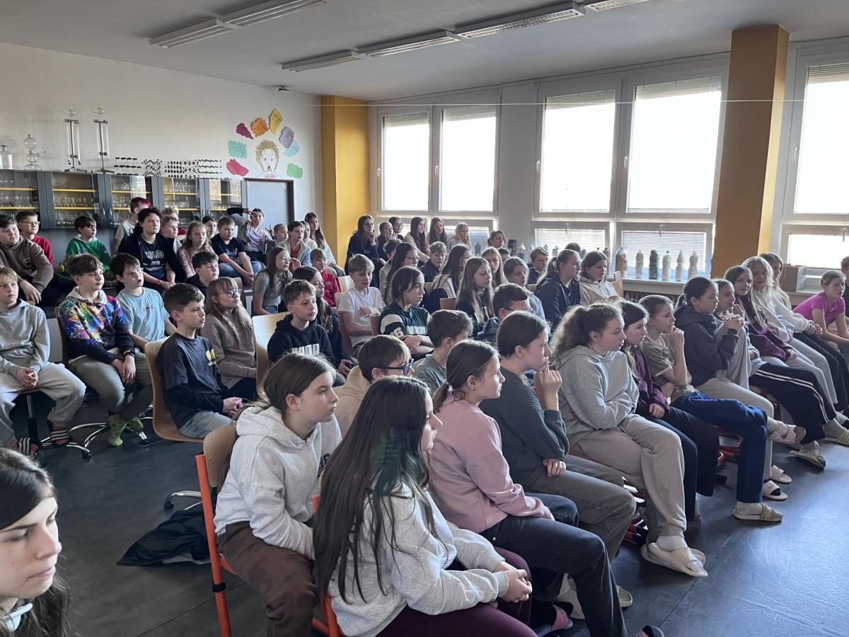 Ve čtvrtek 5. března zavítalo na naši školu Úžasné divadlo fyziky (ÚDiF), které pro naše žáky i učitele připravilo den plný pokusů, objevování a zábavné fyziky.