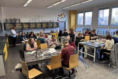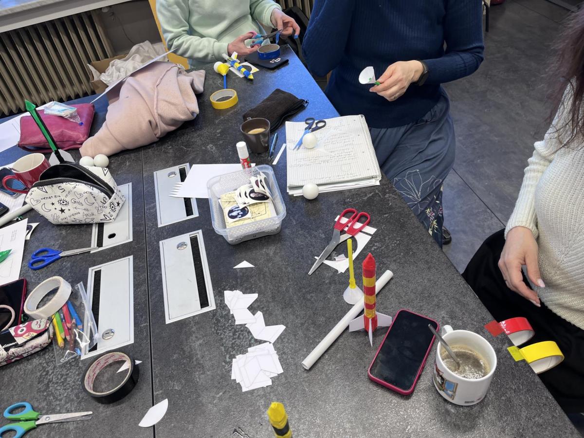 Odpolední část programu byla určena pedagogům všech stupňů – od mateřské školy až po druhý stupeň základní školy. Tématem bylo létání a rakety. Učitelé si vyzkoušeli výrobu různých typů raket i jednoduchého vzduchového děla a společně hledali způsoby, jak principy létání srozumitelně a hravě přiblížit dětem ve třídách.