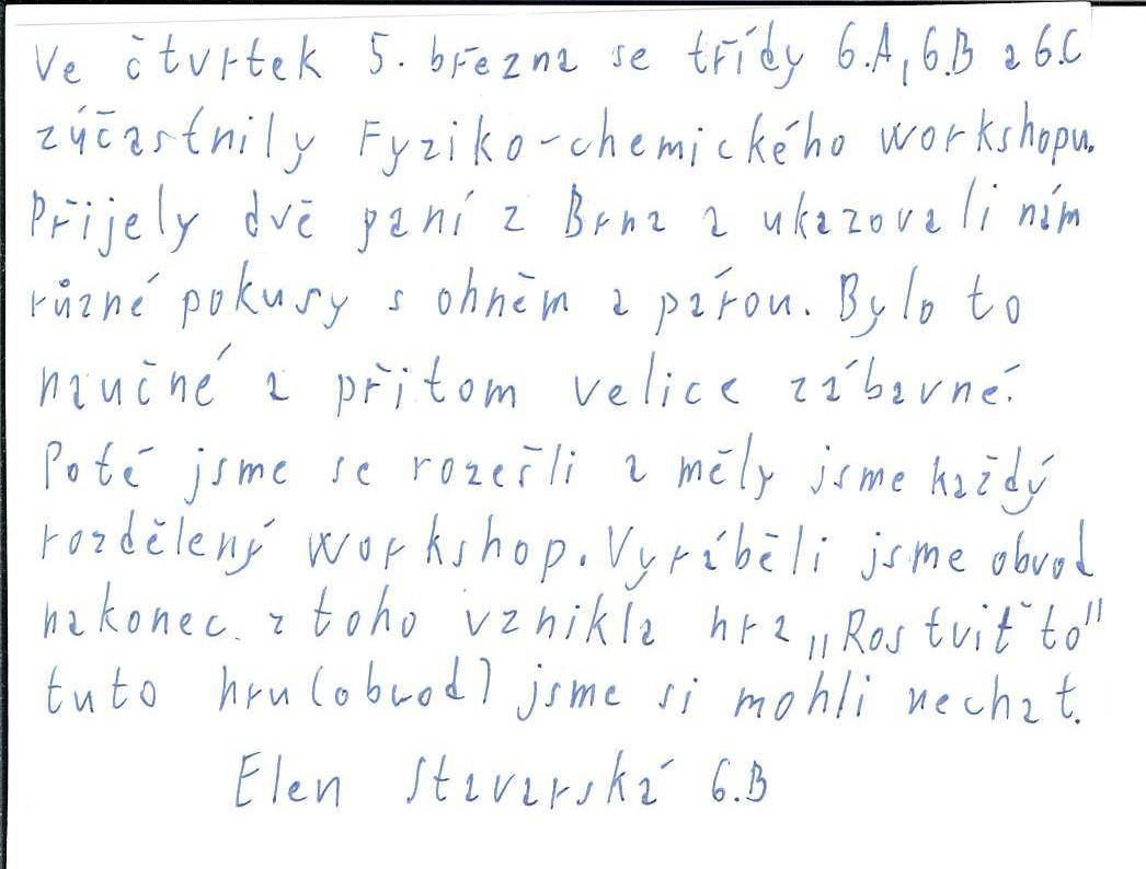Velké poděkování patří vedení školy za podporu a umožnění realizace této akce. Děkujeme také všem kolegům i žákům, kteří se do programu aktivně zapojili a vytvořili příjemnou atmosféru plnou zvídavosti a nadšení pro objevování. Zvláštní poděkování patří Báře a Soni z ÚDiFu za inspirativní program, skvělé pokusy a energii, se kterou dokážou fyziku přiblížit dětem i dospělým.