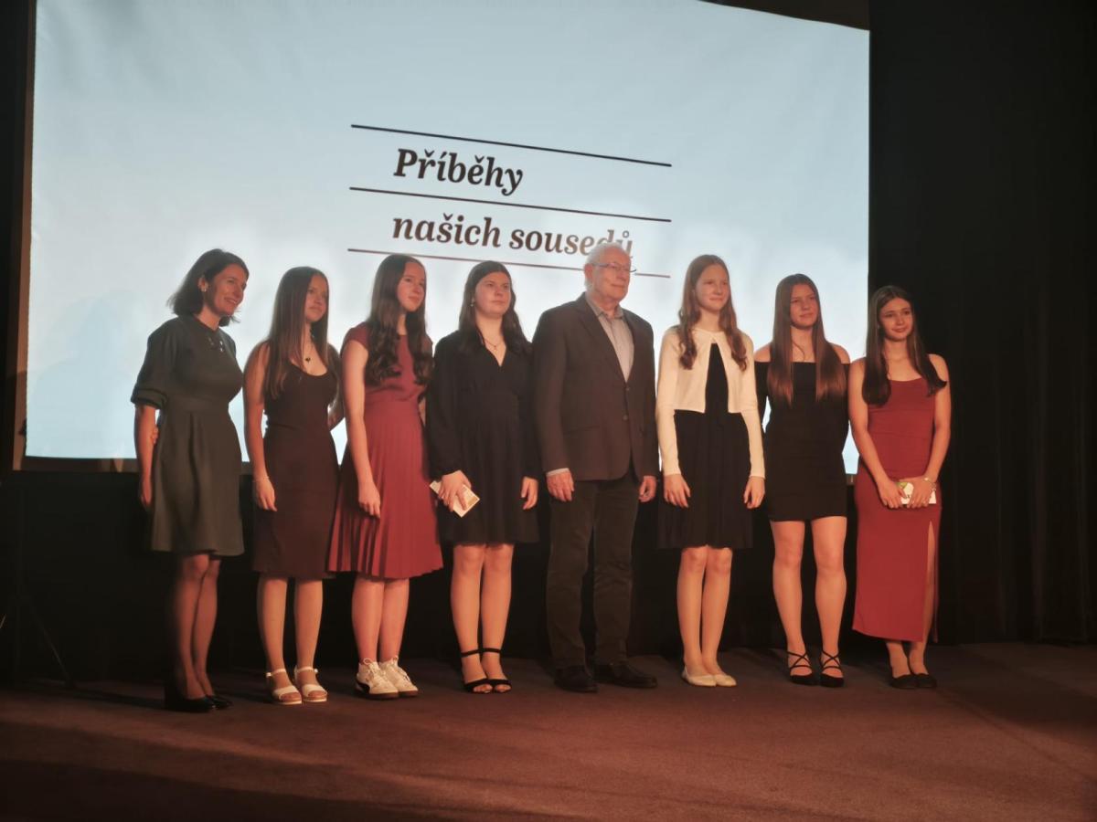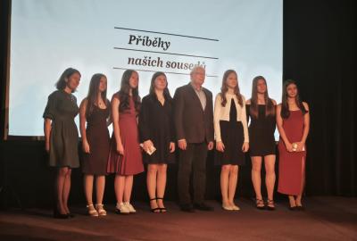 Ve čtvrtek 26. března se žákyně 8. A z ZŠ Hrabina zúčastnily slavnostního setkání projektu Příběhy našich sousedů v Kulturním a společenském středisku Střelnice v Českém Těšíně.