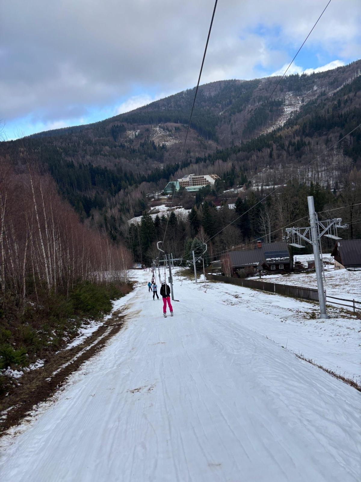 Před obědem jsme se všichni šli převléct, a poté jsme šli na oběd. Dojedli jsme oběd, byly výpečky se zelím a bramborovým knedlíkem. Hodinu jsme měli odpolední klid. Mezitím jsme se museli připravovat na odpolední lyžování, které začalo kolem 2 hodiny. Skončilo odpolední lyžování a my jsme se přesunuli do sprch. Kolem šesté hodiny jsme šli na večeři, byly buchtičky s krémem. Po večeři jsme šli hrát týmové hry, které jsme si moc užili!