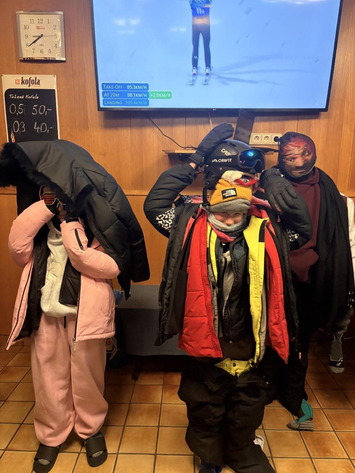Na snídani byli menší švédské stoly, kde byli na výběr párky, křupinky s mlékem, pečivo, marmelády a další. Kolem deváté hodiny jsme vyšli z ubytování ven, kde jsme se rozdělili do skupinek a po krátké rozcvičce jsme cca 3 hodiny lyžovali.