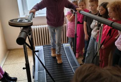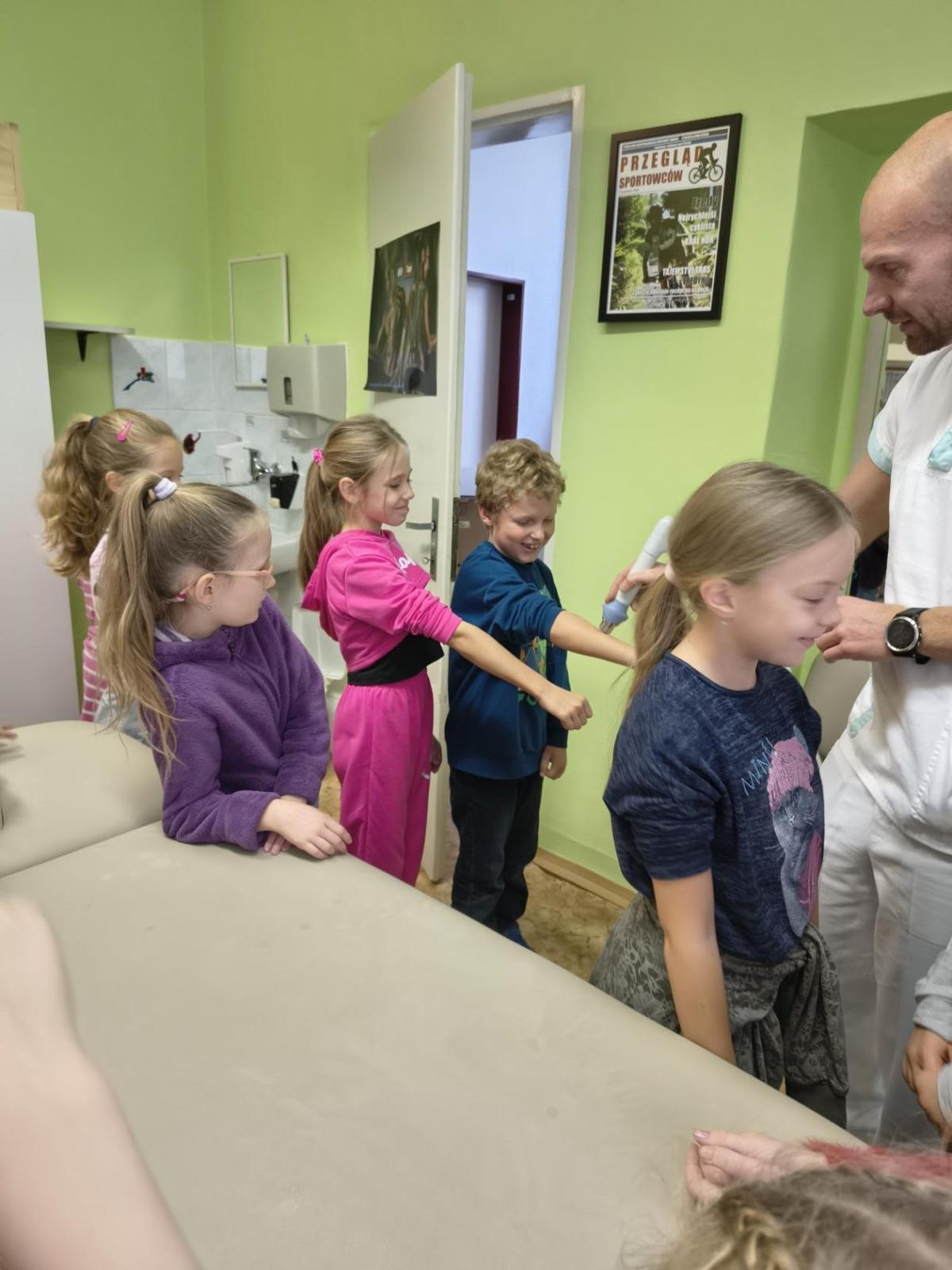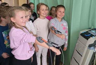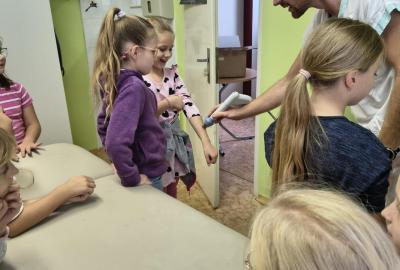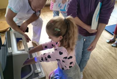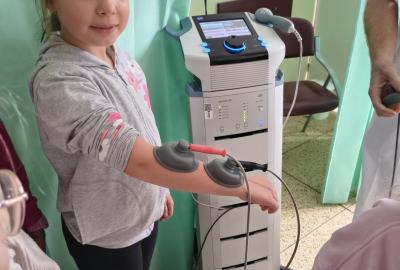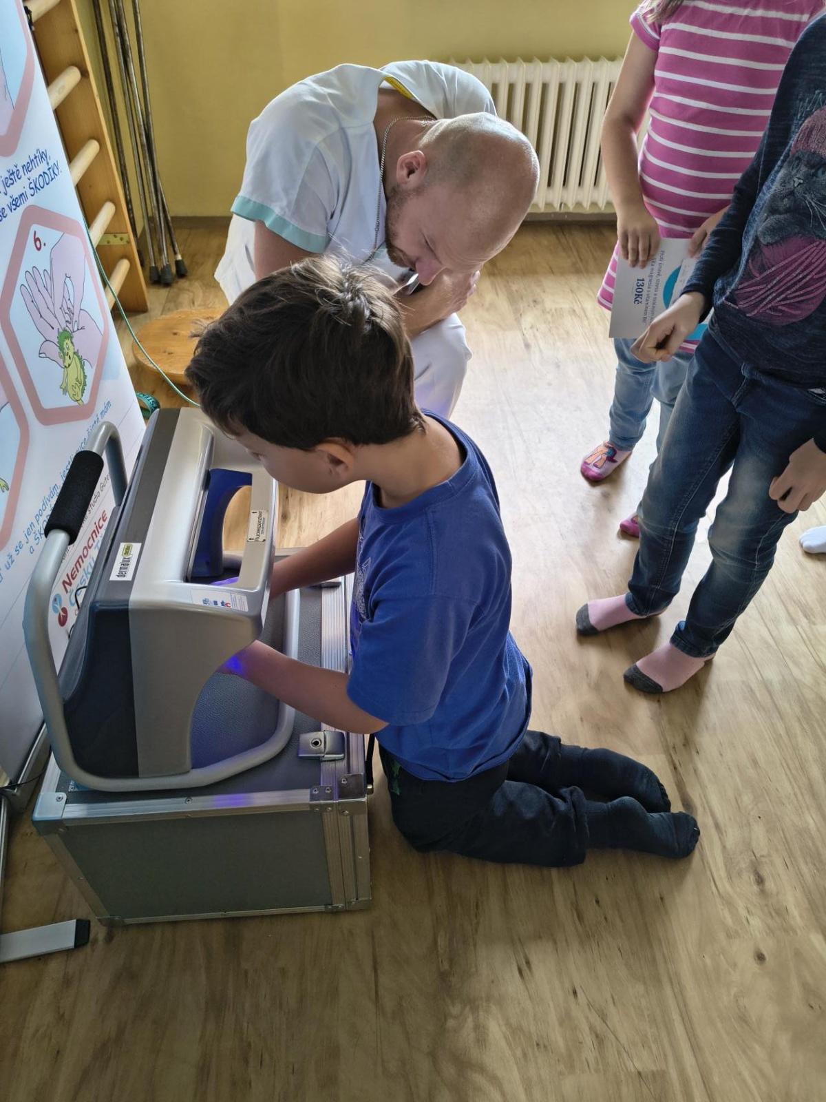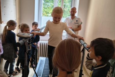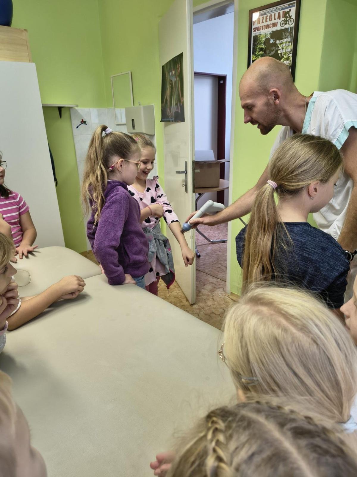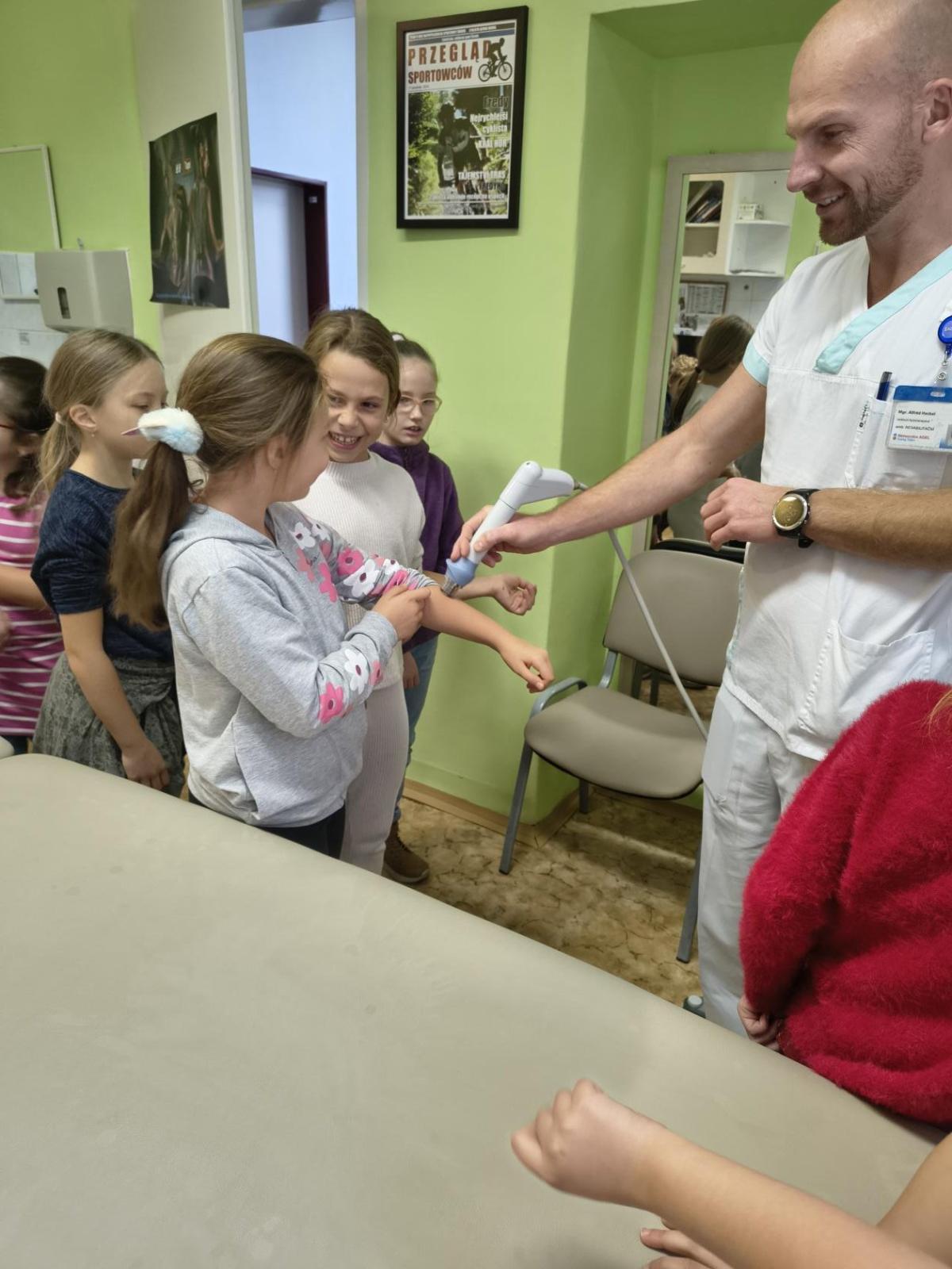 Navštívili jsme rehabilitační oddělení v nemocnici, kam nás pozval tatínek Emči. Bylo to pro nás velmi zajímavé. Viděli jsme, jak se léčí pacienti vodoléčbou, elektroléčbou nebo laserem nebo rázovou vlnou. Ti odvážní si to i vyzkoušeli. Co jsme si vyzkoušeli všichni, byl pás, po kterém jsme se učili správně chodit. No, někteří po něm spíš běhali, asi někam spěchali... :-)