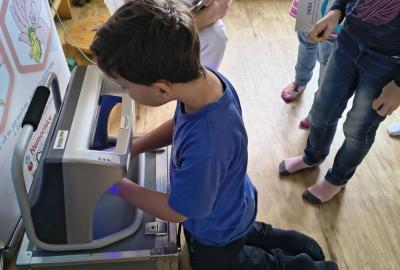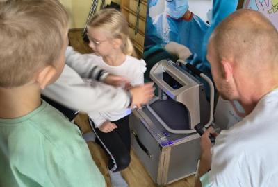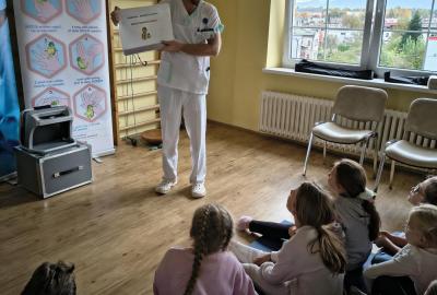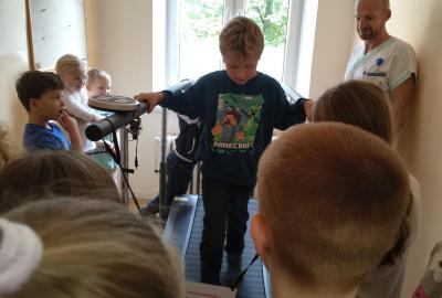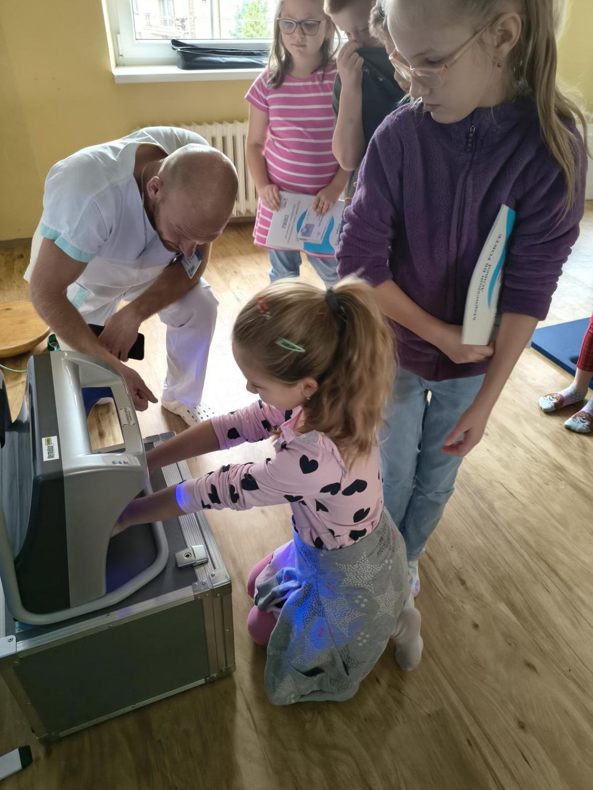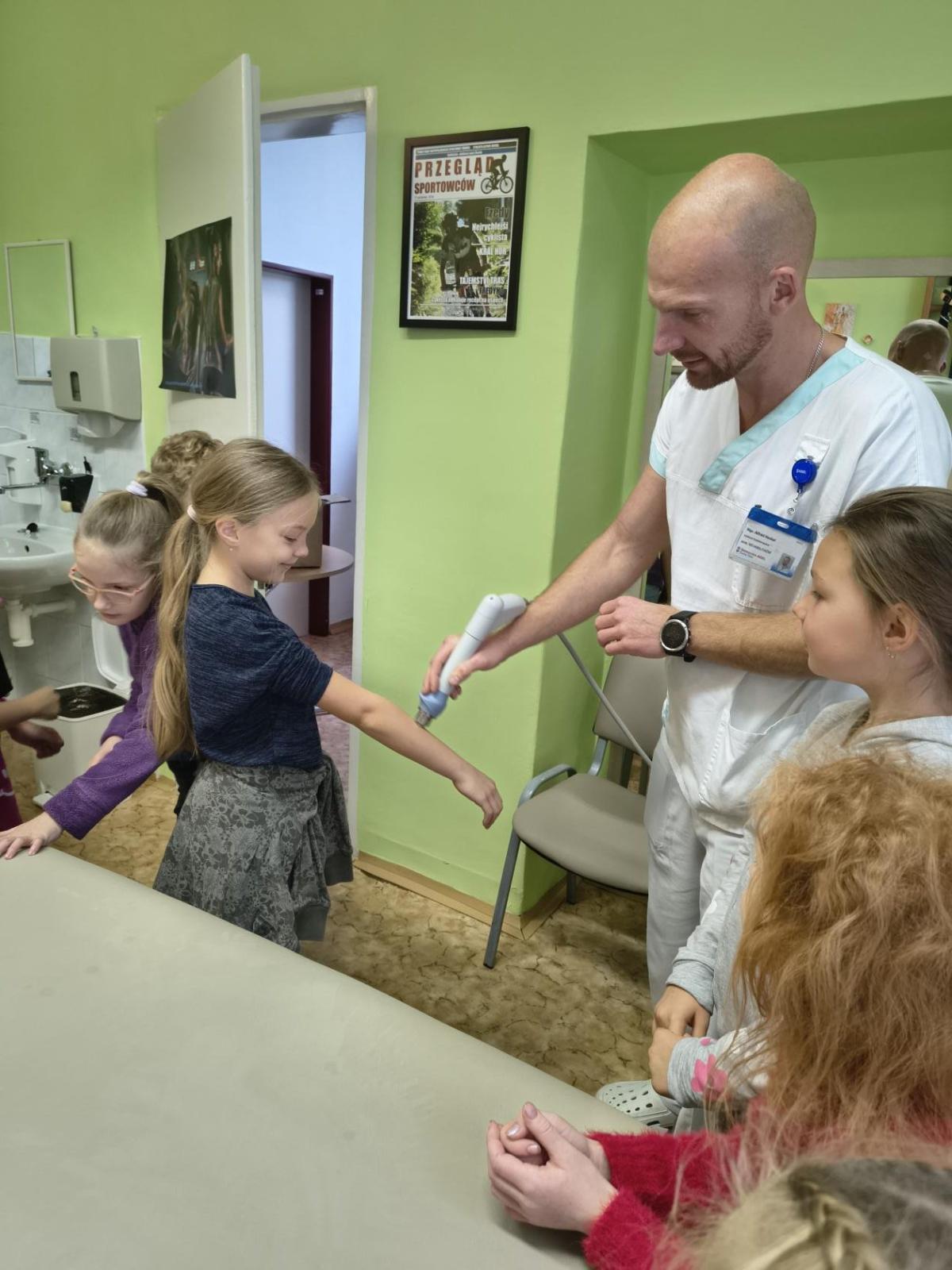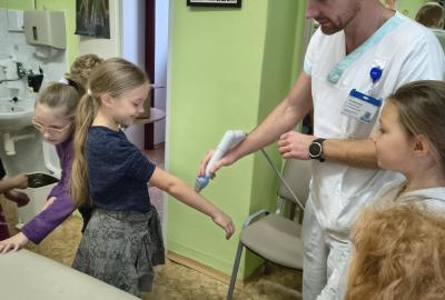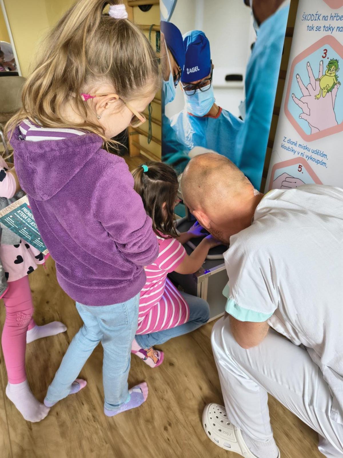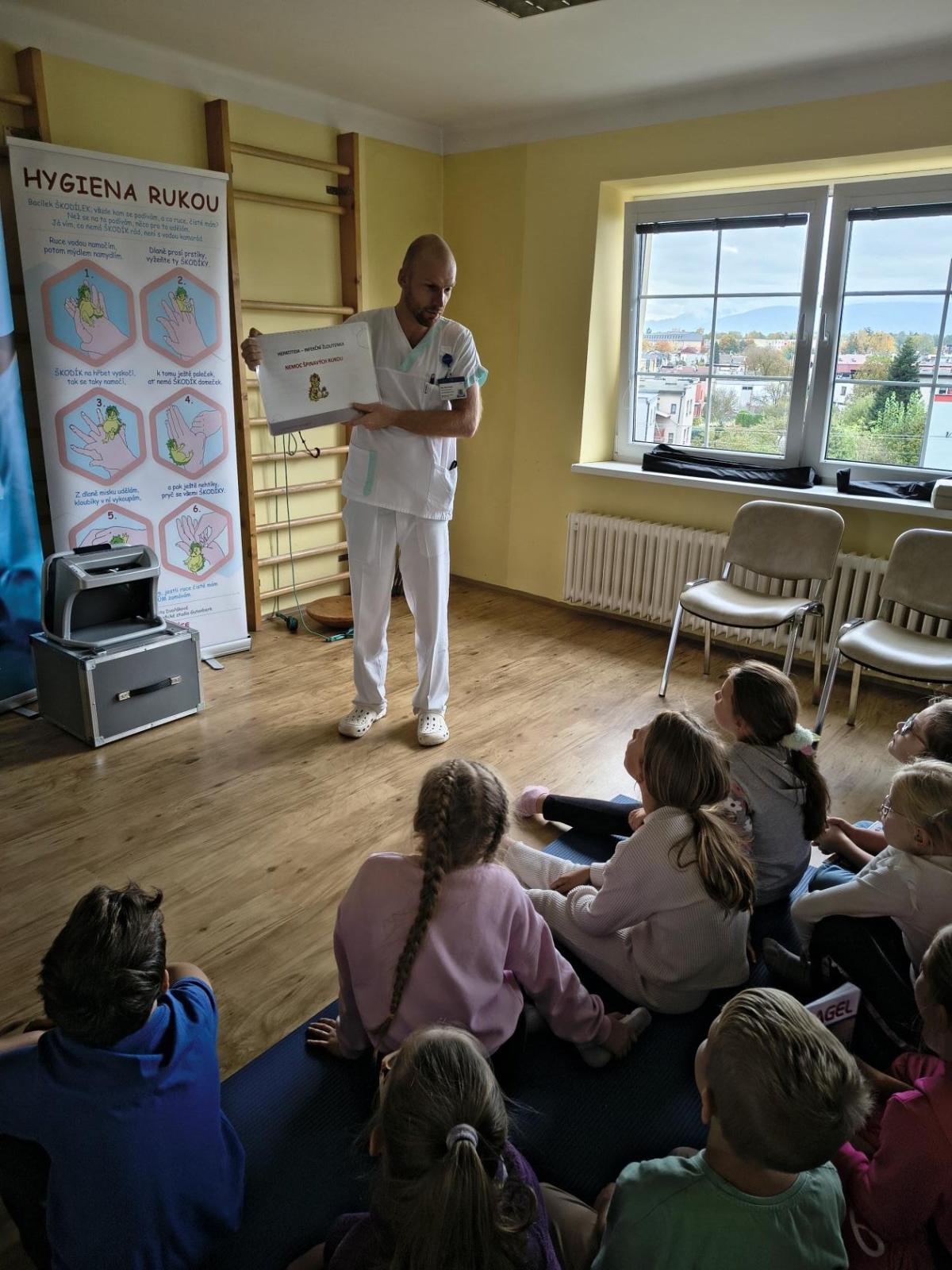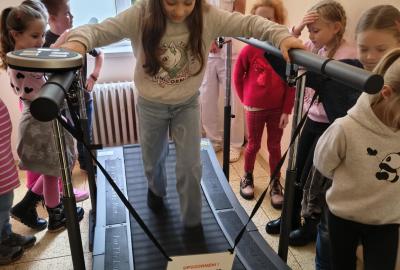 Navštívili jsme rehabilitační oddělení v nemocnici, kam nás pozval tatínek Emči. Bylo to pro nás velmi zajímavé. Viděli jsme, jak se léčí pacienti vodoléčbou, elektroléčbou nebo laserem nebo rázovou vlnou. Ti odvážní si to i vyzkoušeli. Co jsme si vyzkoušeli všichni, byl pás, po kterém jsme se učili správně chodit. No, někteří po něm spíš běhali, asi někam spěchali... :-)